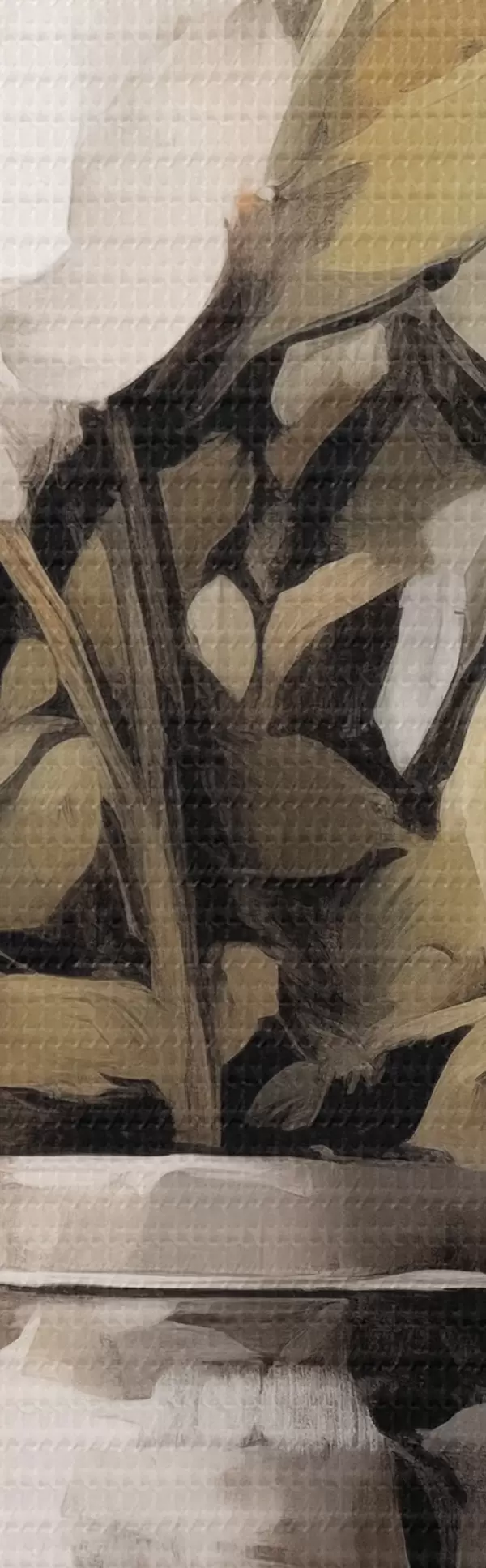 Drobny splot nici na tym płótnie przypomina powierzchnię profesjonalnych płócien artystycznych.