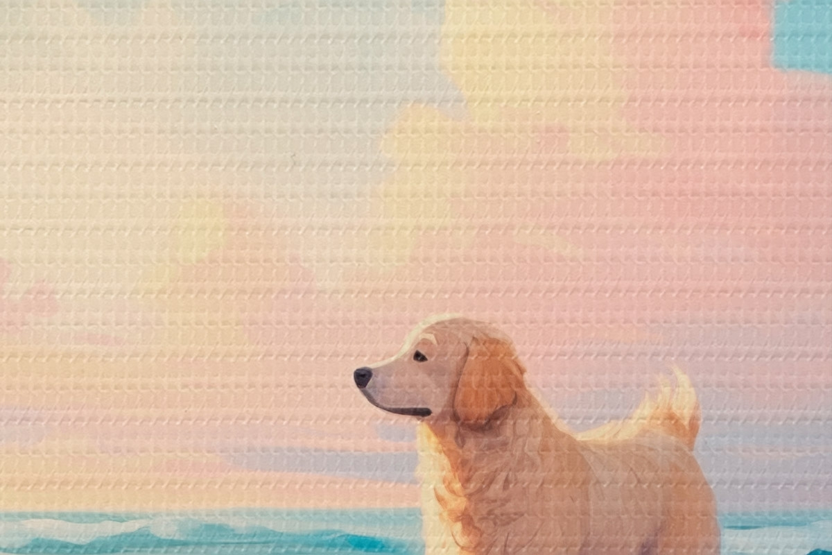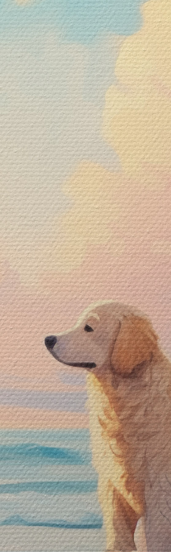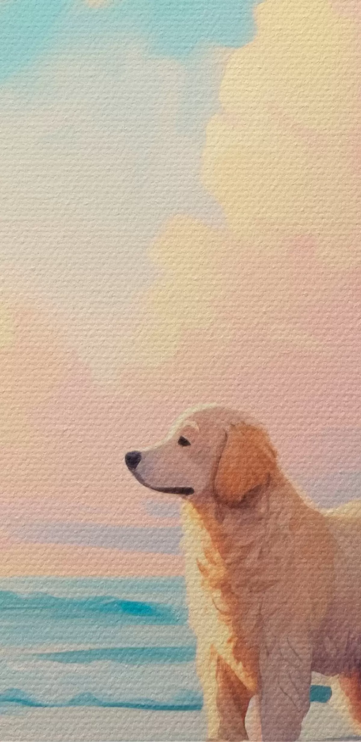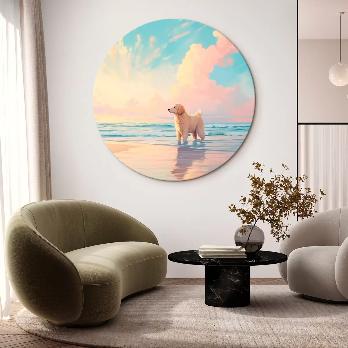 Okrągłe obrazy Retriever na brzegu morza r45425