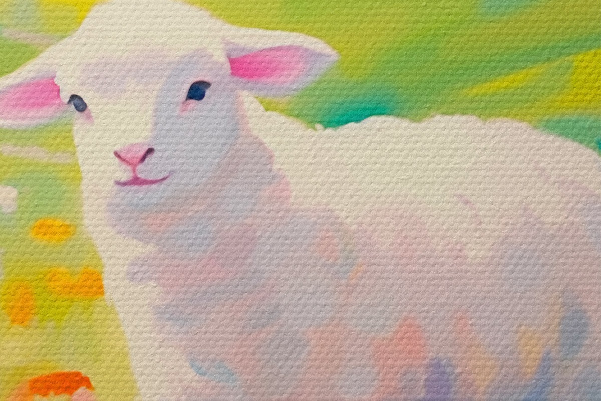 Okrągłe obrazy Baranek na polu kwiatów r45426
