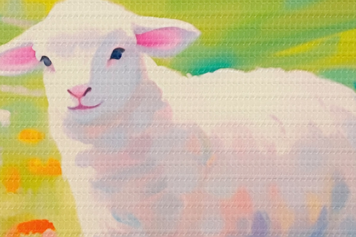 Okrągły obraz Baranek na polu kwiatów Nr r45426