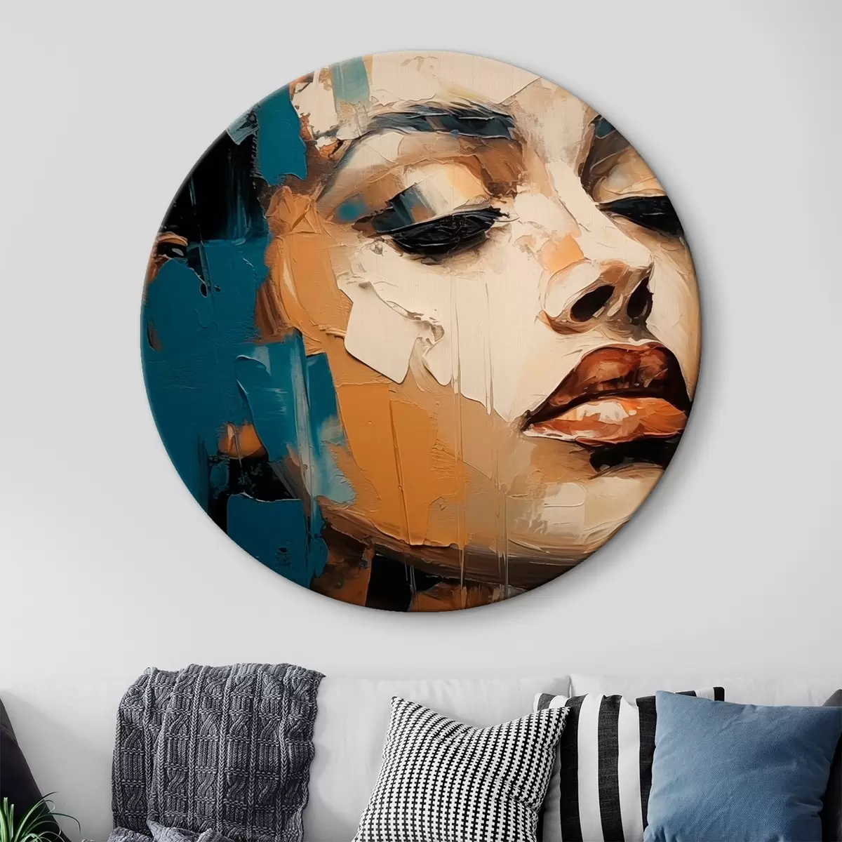 Okrągły obraz Portret kobiety z zamkniętymi oczami Nr r45439
