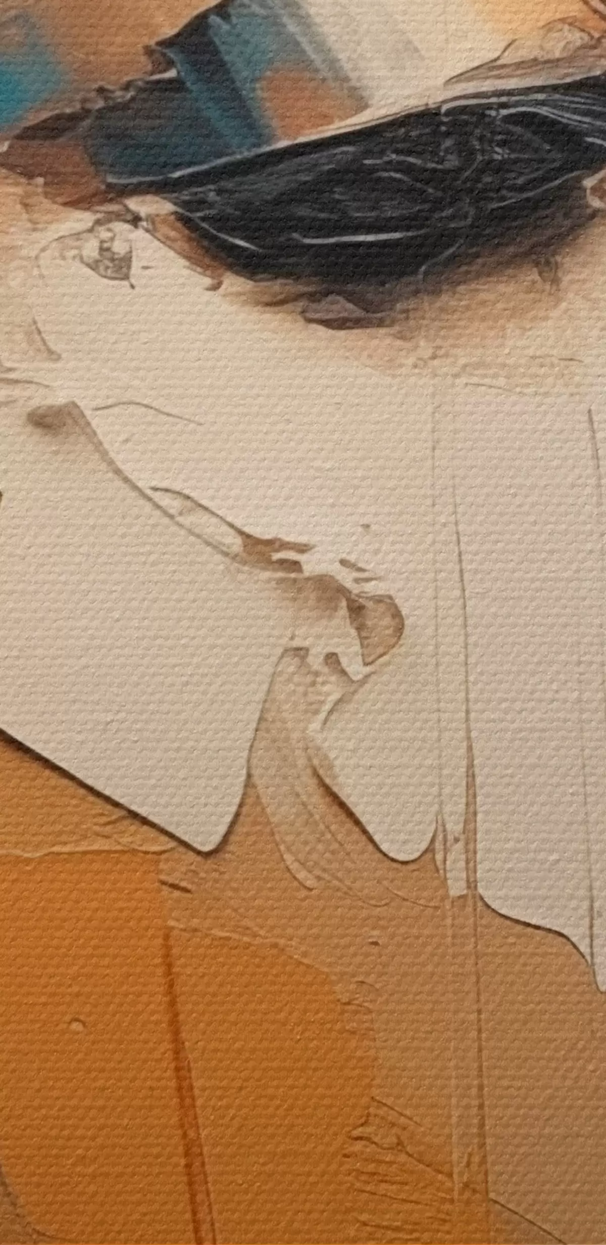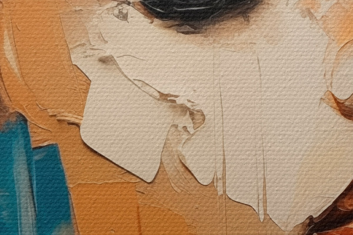 Drobny splot nici na tym płótnie przypomina powierzchnię profesjonalnych płócien artystycznych.