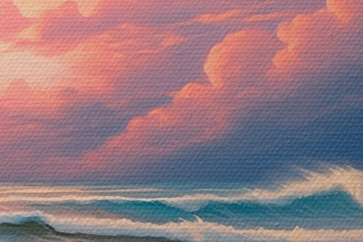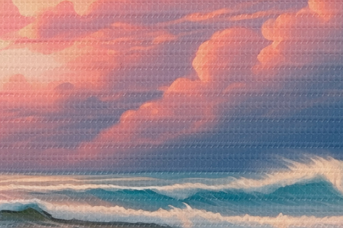 Drobny splot nici na tym płótnie przypomina powierzchnię profesjonalnych płócien artystycznych.