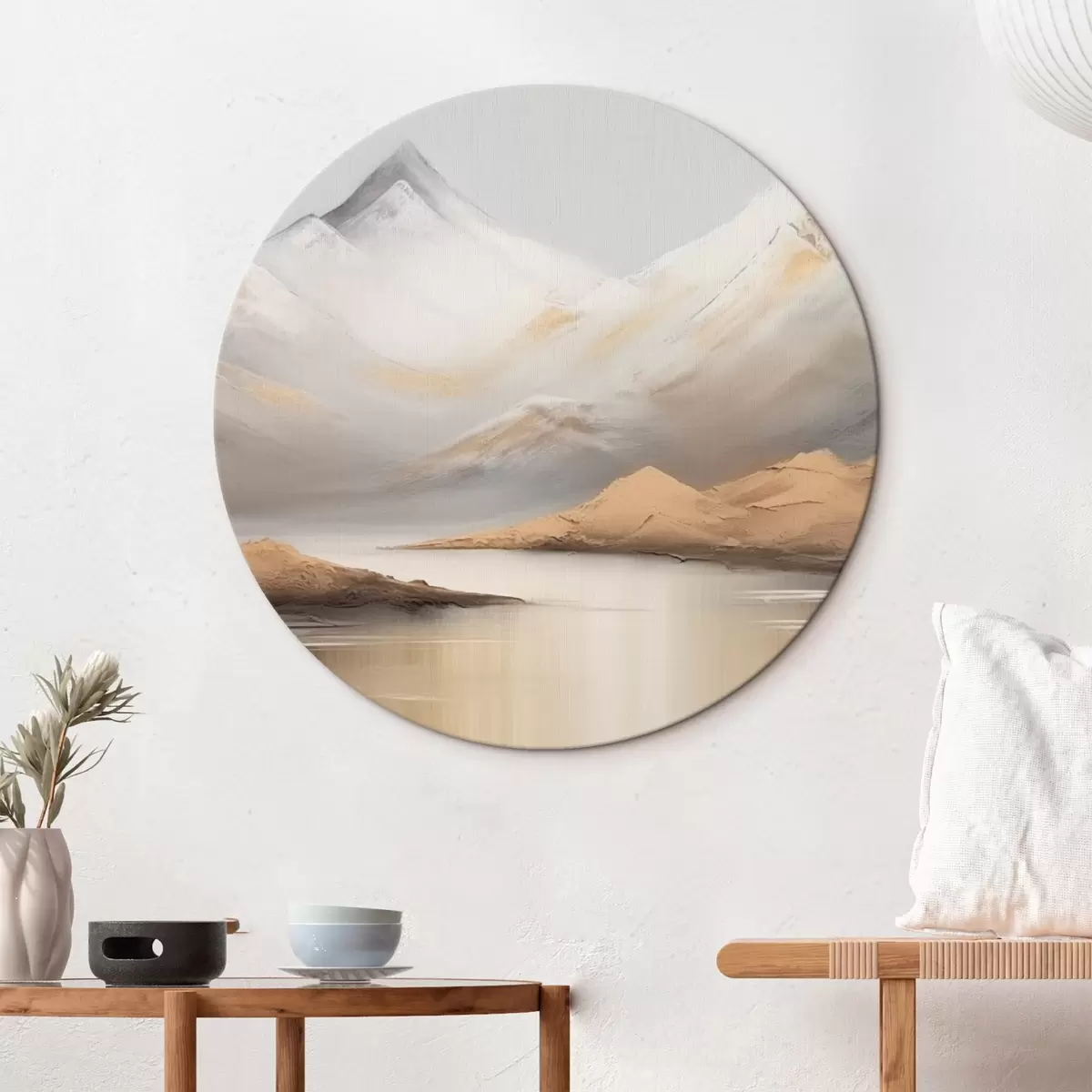 Okrągły obraz Górskie jezioro pod ośnieżonymi szczytami Nr r45466