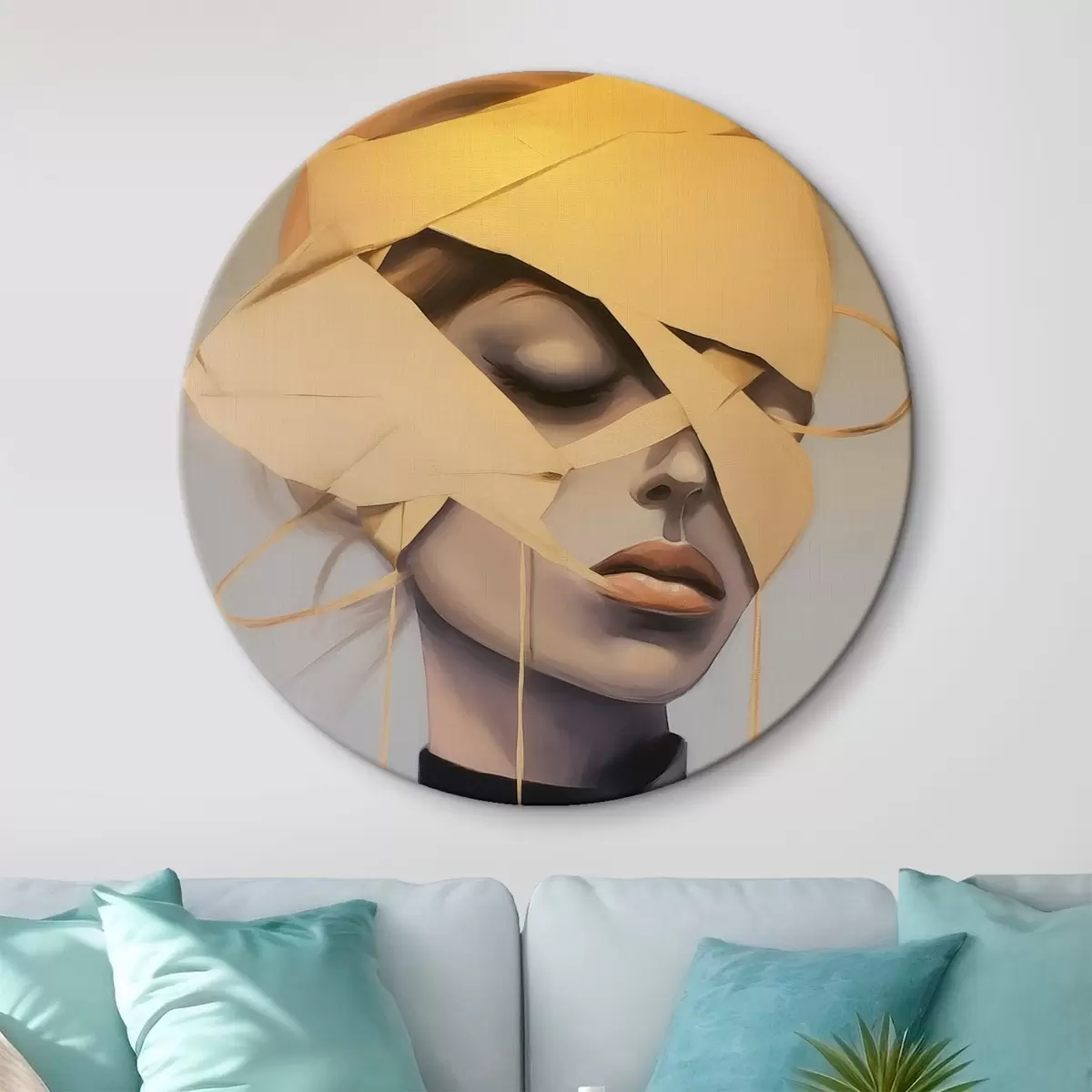 Okrągłe obrazy Portret kobiety z bandażem r45472
