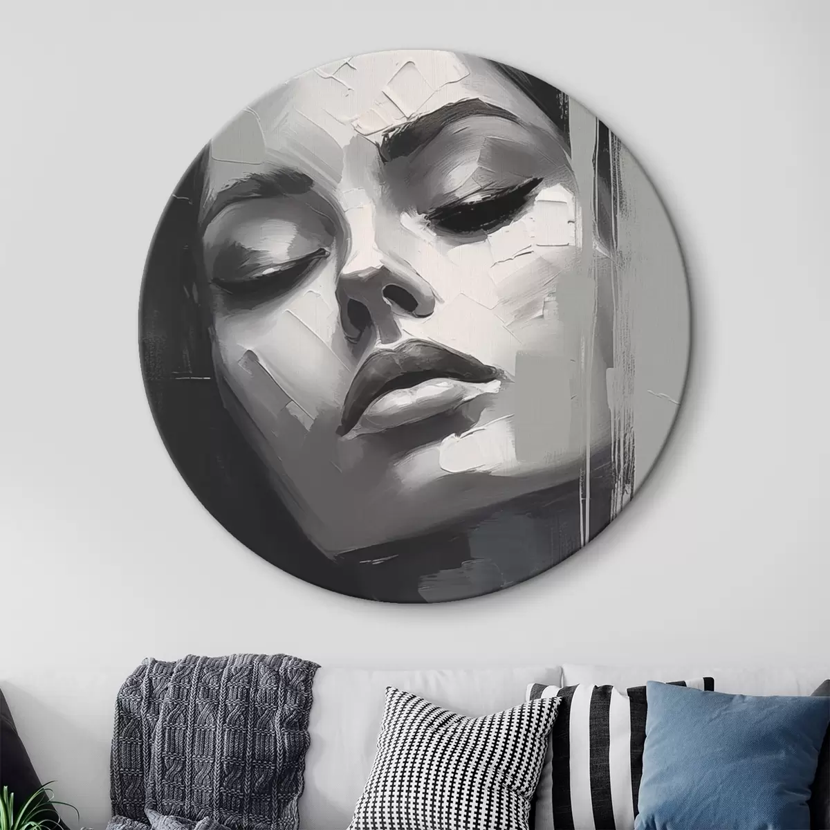 Okrągły obraz Czarno-biały portret kobiety z zamkniętymi oczami Nr r45479