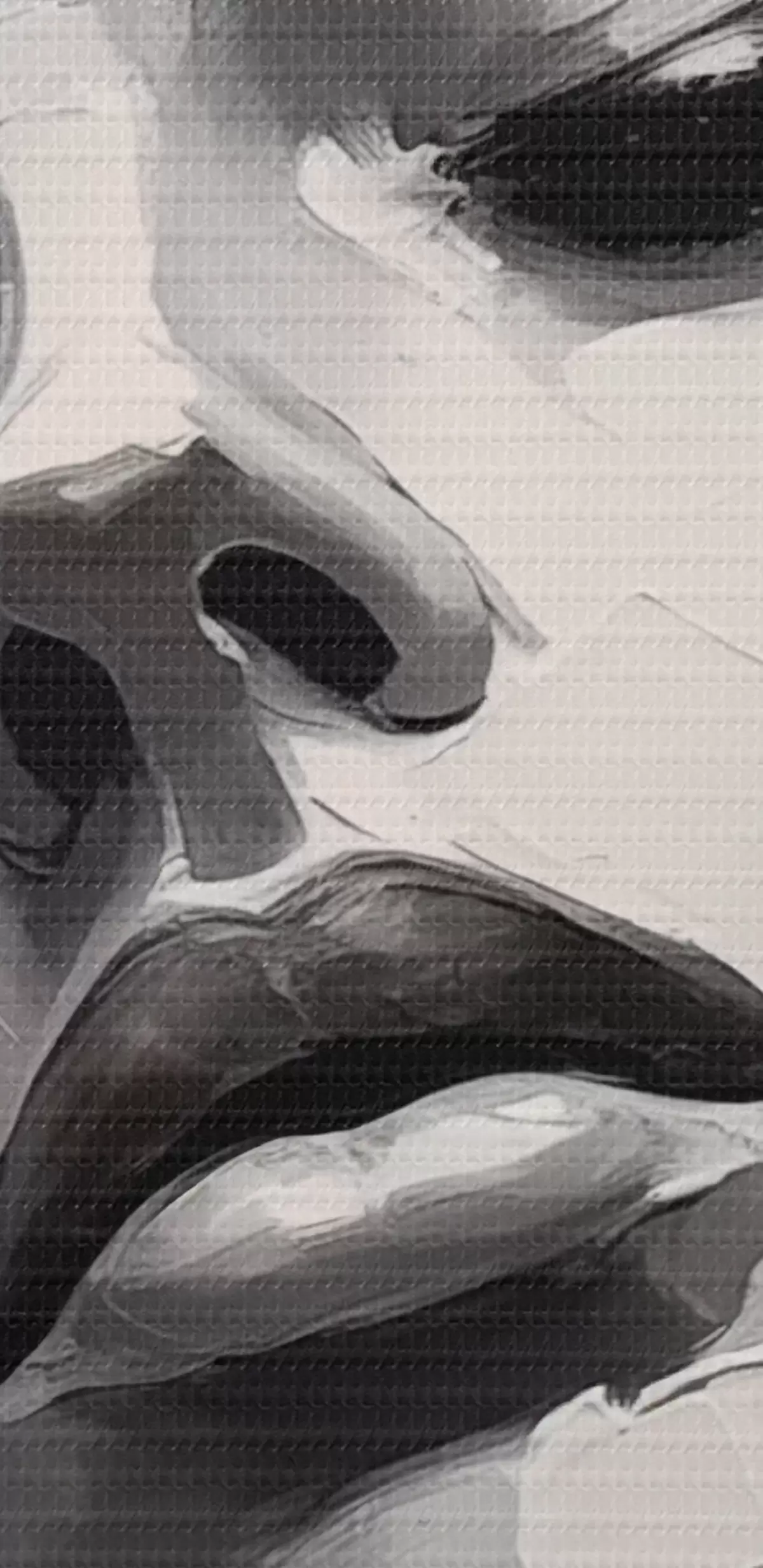Drobny splot nici na tym płótnie przypomina powierzchnię profesjonalnych płócien artystycznych.