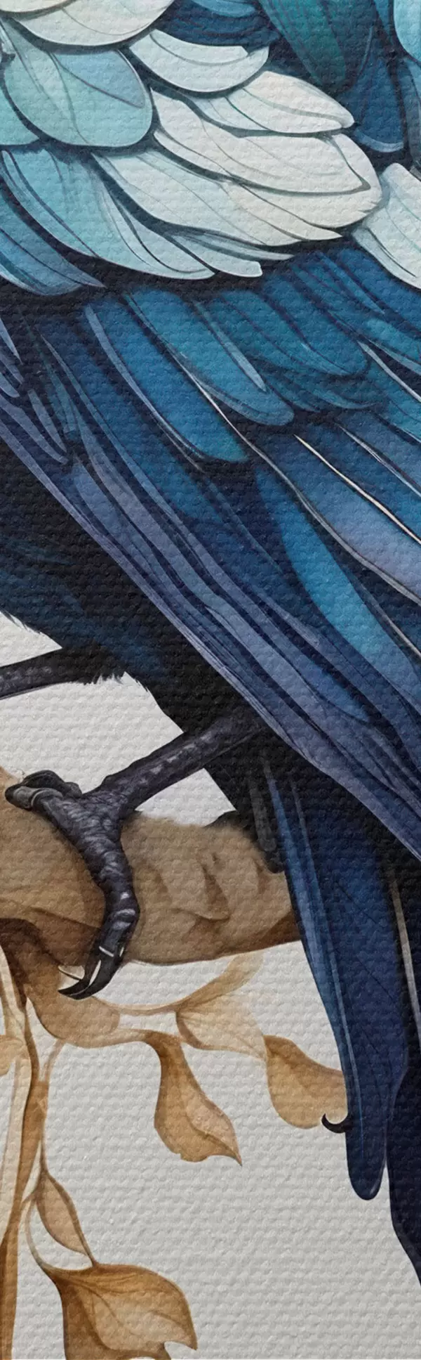 Okrągłe obrazy Niebieski ptak na gałęzi z akwarelowymi liśćmi r45483