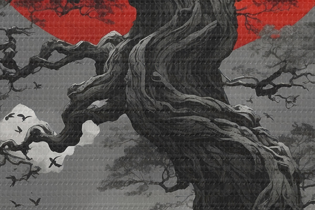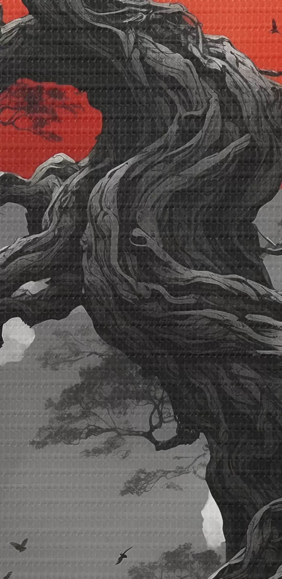 Okrągły obraz Drzewo i czerwone słońce Nr r45485