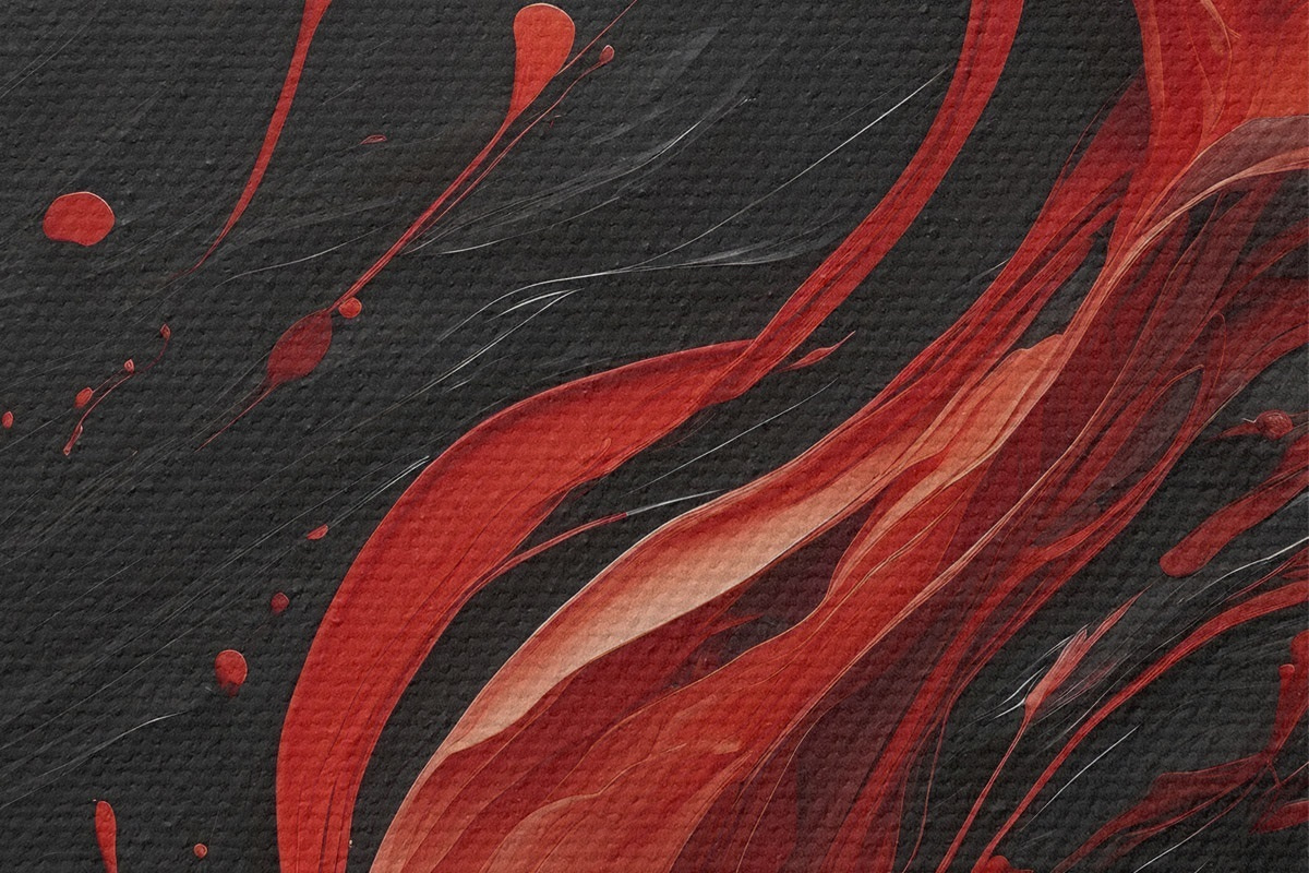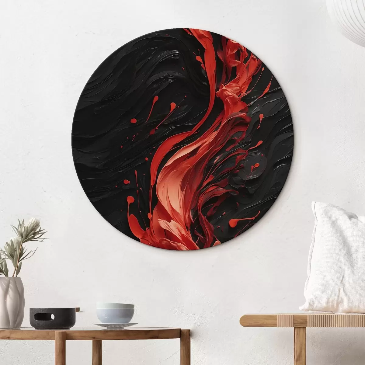 Okrągły obraz Abstrakcja z czerwonymi pociągnięciami pędzla na czarnym tle Nr r45490