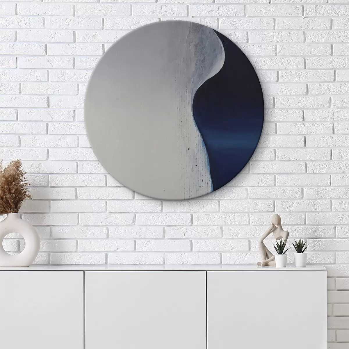 Okrągły obraz Abstrakcyjny obraz w odcieniach bieli, błękitu i ciemnoniebieskiego Nr r45493