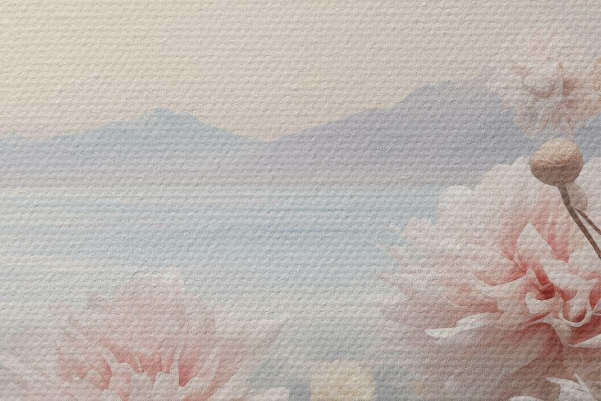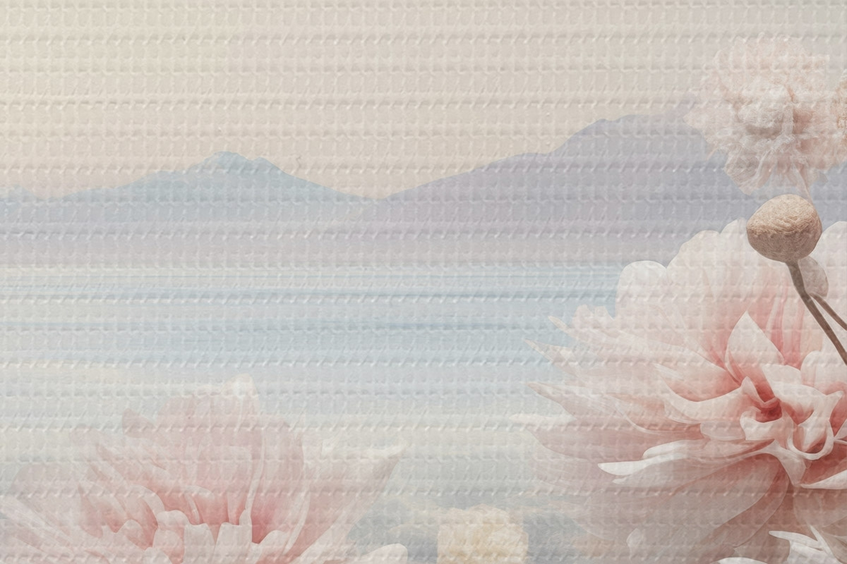 Okrągłe obrazy Delikatne różowe kwiaty nad morzem o świcie r45496