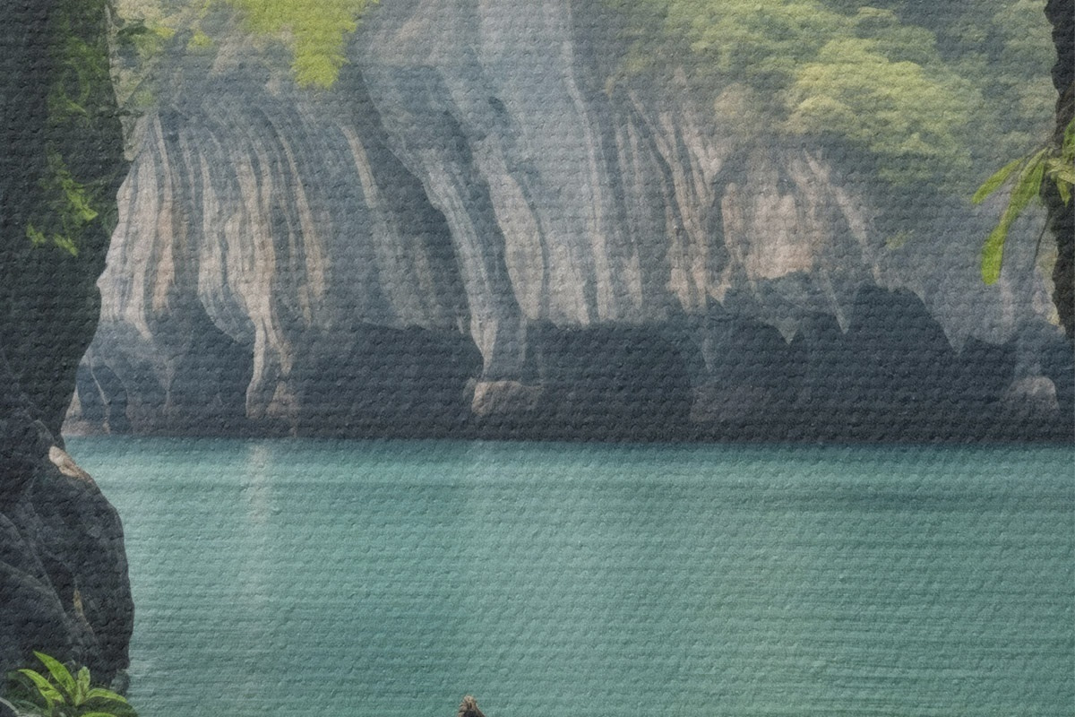 Drobny splot nici na tym płótnie przypomina powierzchnię profesjonalnych płócien artystycznych.
