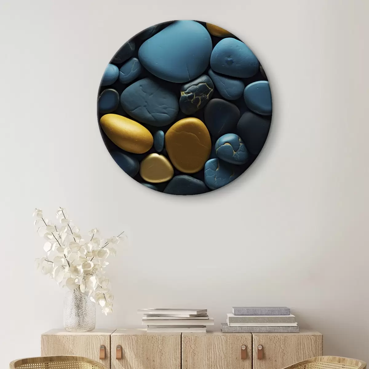 Okrągły obraz Niebieskie i żółte kamienie Nr r45512