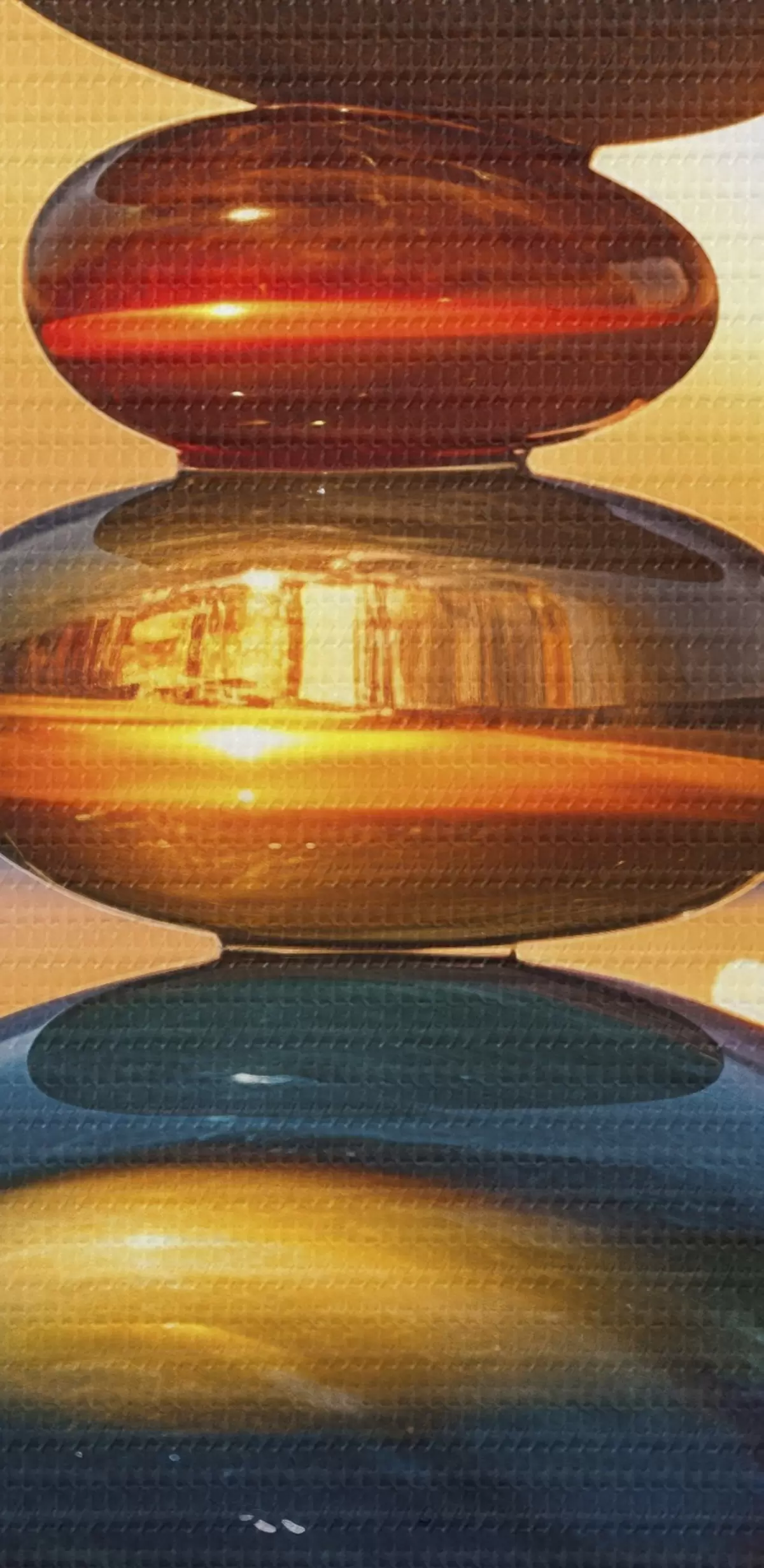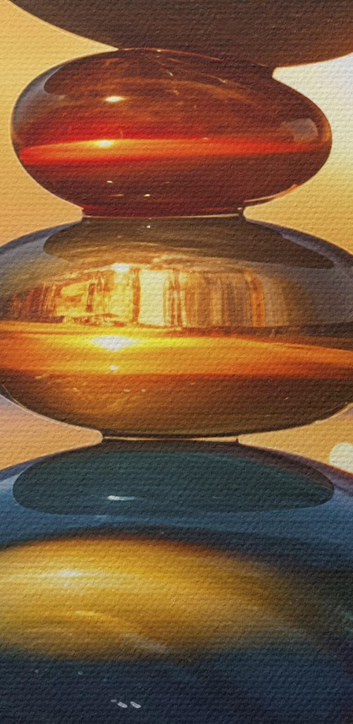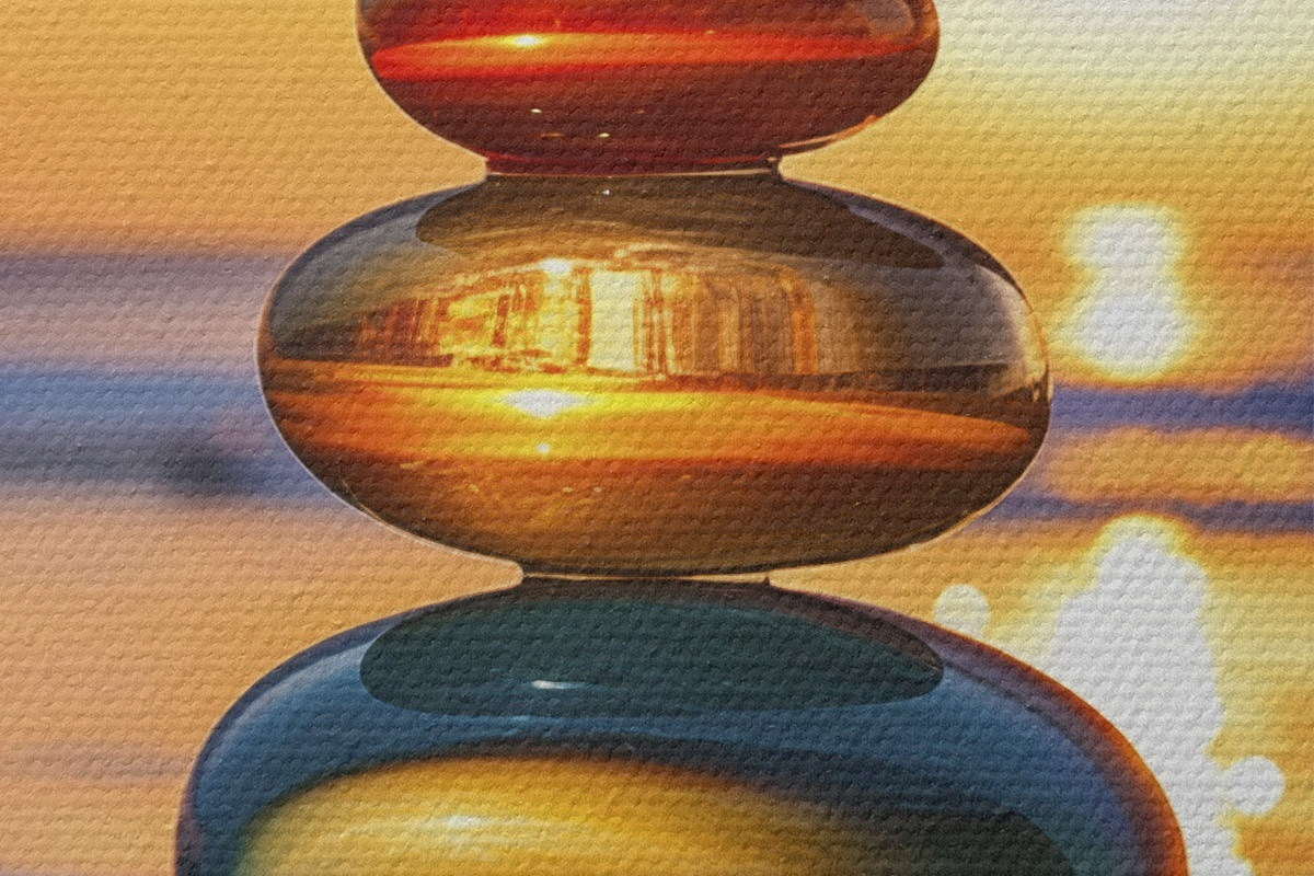 Okrągły obraz Kamienie ułożone w stos na tle zachodu słońca Nr r45520