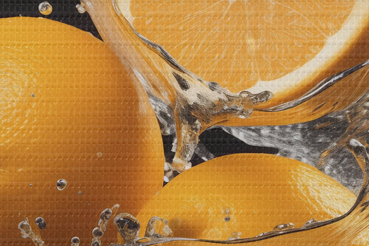Okrągły obraz Soczyste pomarańcze w bryzgach wody Nr r45526