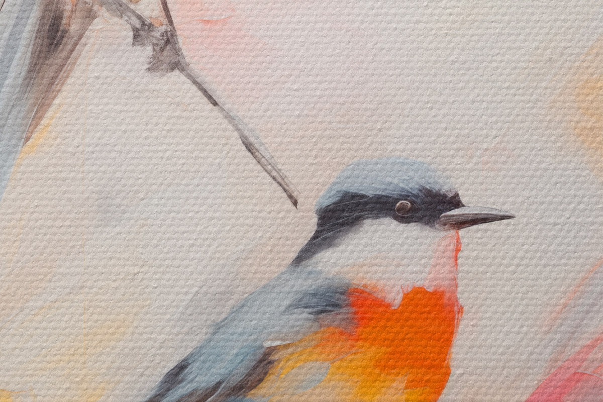 Drobny splot nici na tym płótnie przypomina powierzchnię profesjonalnych płócien artystycznych.
