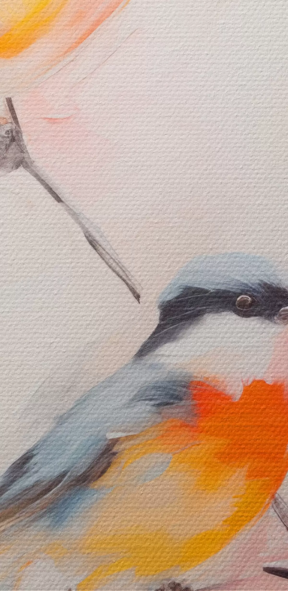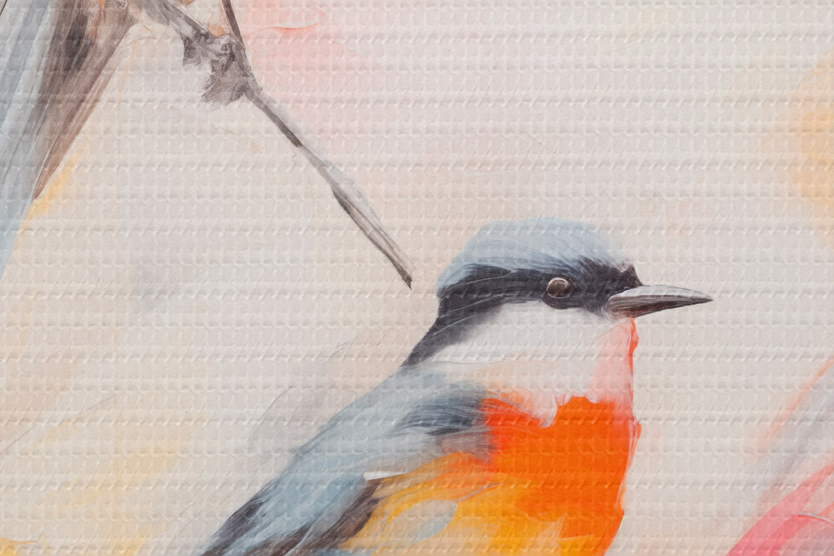 Okrągły obraz Ptaki siedzące na gałęziach, delikatne pastelowe kolory, jasne tło z różowymi i białymi odcieniami Nr r45577