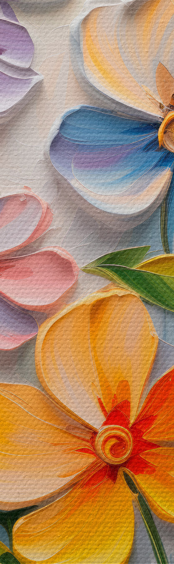 Okrągły obraz Kwiatowa martwa natura: wielokolorowe kwiaty w technice impasto Nr r45598