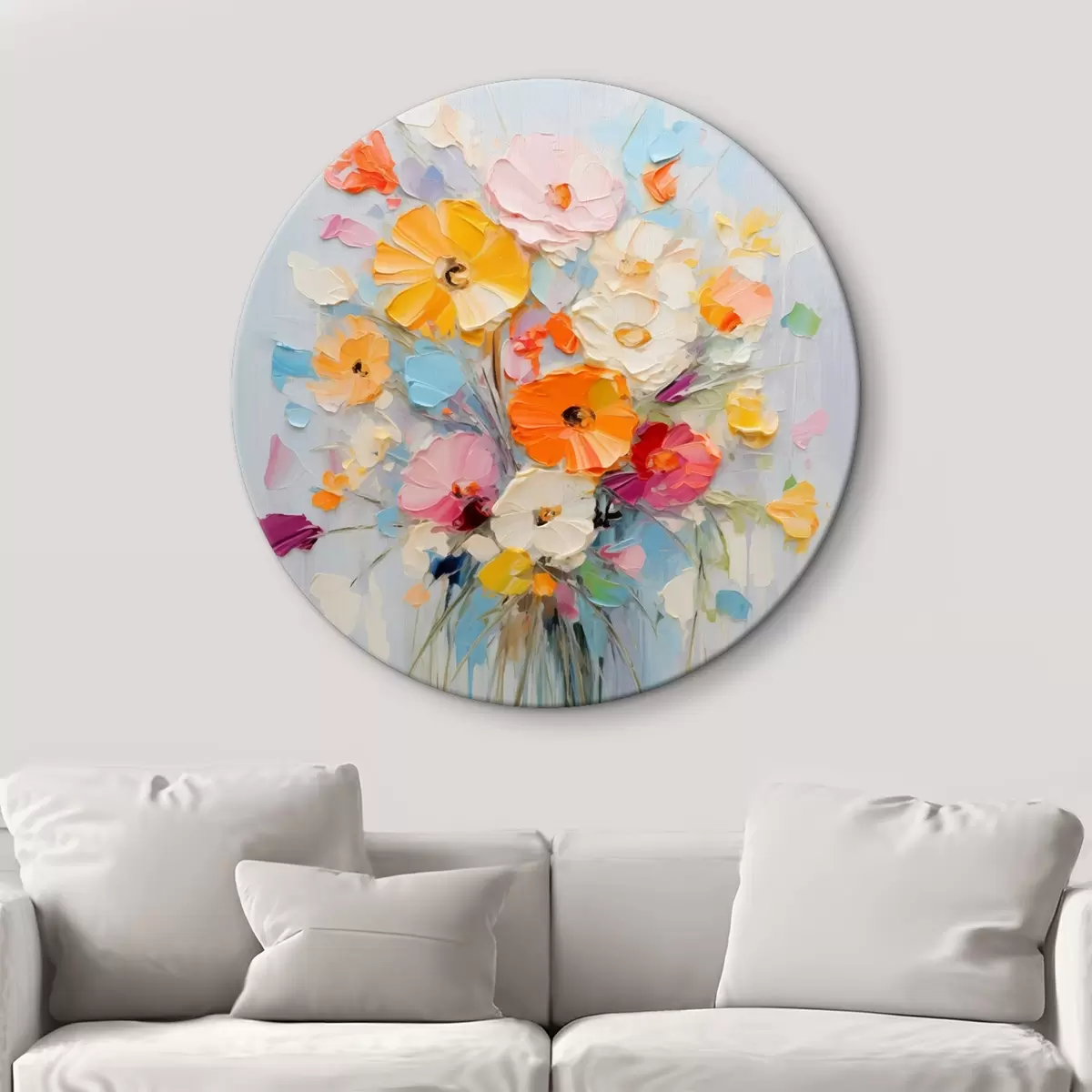 Okrągły obraz Motyw kwiatowy: abstrakcyjny bukiet w pastelowych odcieniach Nr r45599