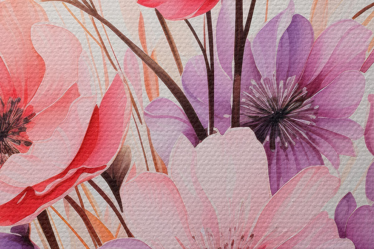Okrągły obraz Delikatny bukiet różowych i liliowych maków na jasnym tle, styl akwareli Nr r45601
