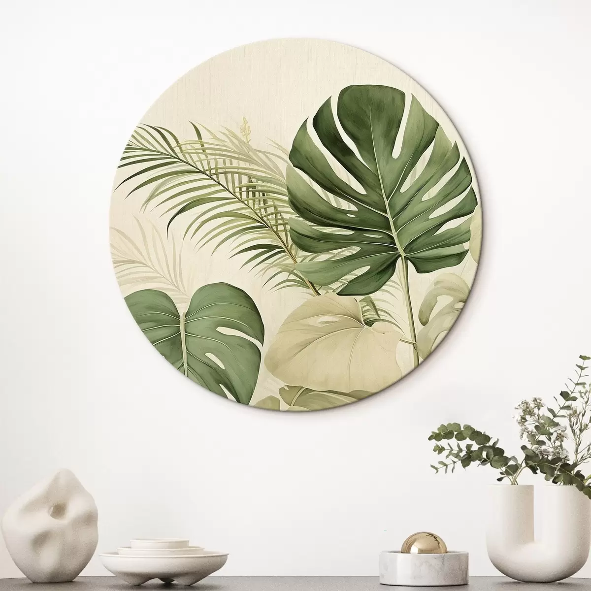 Okrągły obraz Liście Monstera i tropikalne Nr r45614