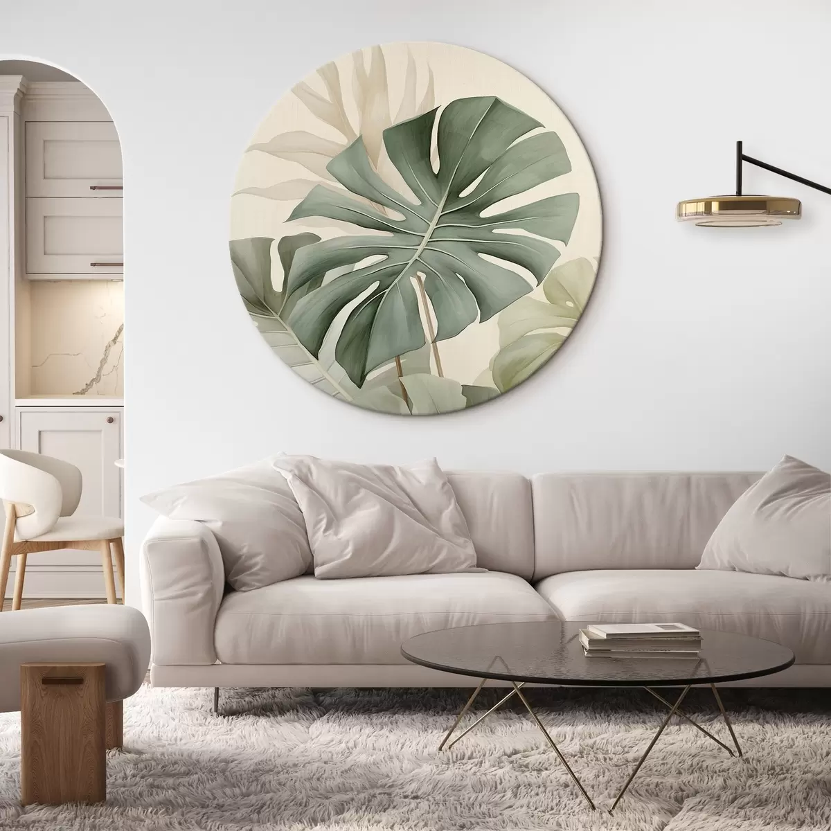 Okrągłe obrazy Duży liść Monstera r45616