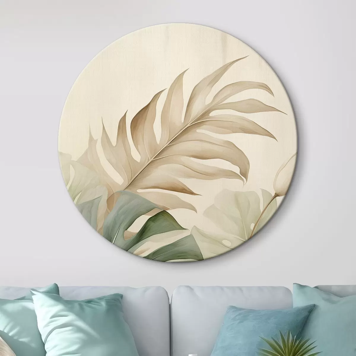 Okrągły obraz Tropikalne liście na jasnym tle Nr r45617