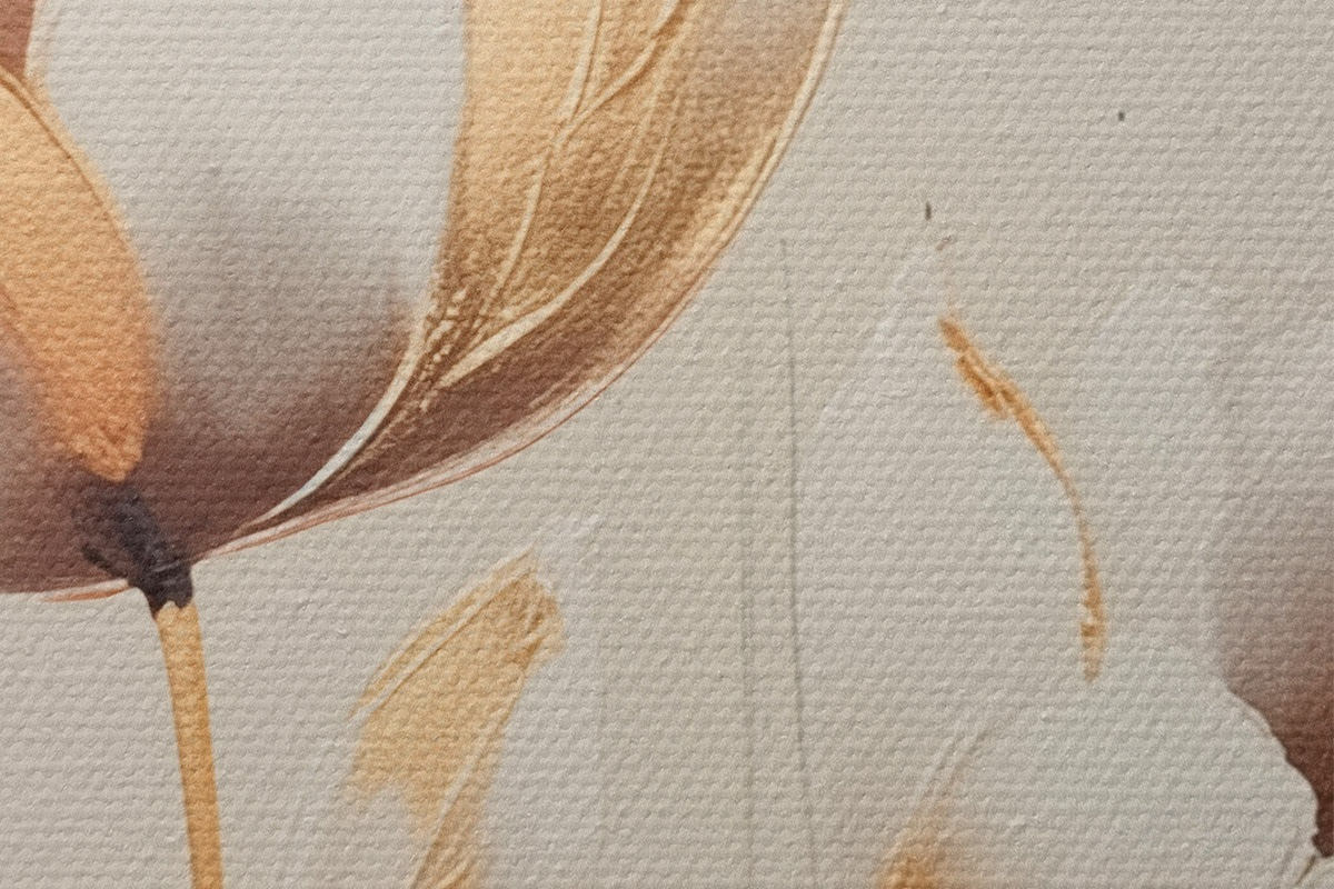 Do zamówienia dostępne są trzy rodzaje materiału: Economic Canvas - gęsty i trwały materiał do druku cyfrowego, identyczny z płótnem malarskim, wodoodporna powierzchnia, realistyczne odwzorowanie szczegółów, materiał średnioziarnisty. Premium Canvas - tekstura przypominająca płótno malarskie (przeplatane drobne nitki). Miękka, szczegółowa reprodukcja obrazu na matowej powierzchni. Eco-Premium - wysokiej jakości tkanina w 100% bawełniana. Dzięki naturalnym włóknom bawełnianym materiał jest trwały i odporny na zużycie. Doskonałe odwzorowanie kolorów i szczegółów.