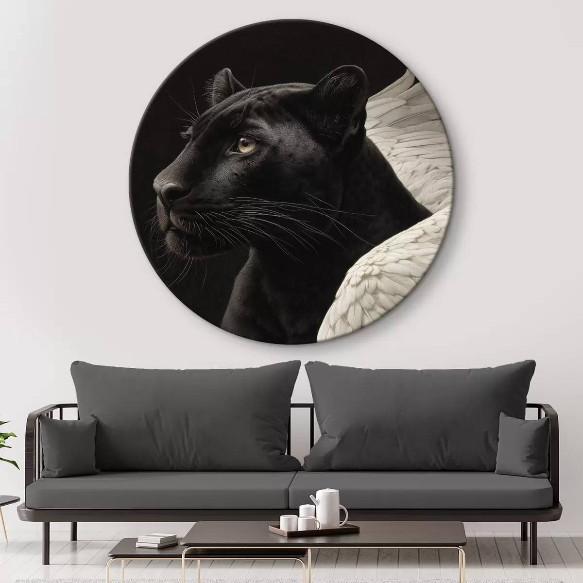 Okrągłe obrazy Czarna pantera ze skrzydłami w stylu fantasy r45653