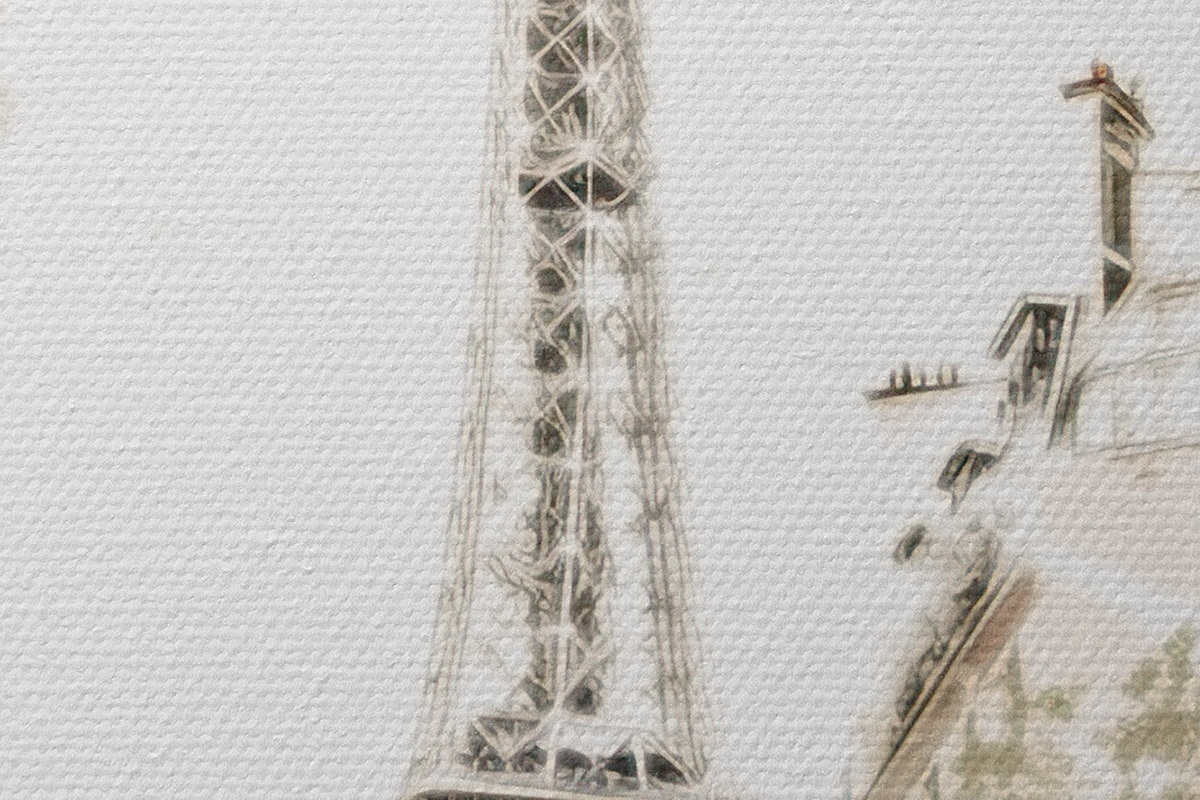 Drobny splot nici na tym płótnie przypomina powierzchnię profesjonalnych płócien artystycznych.