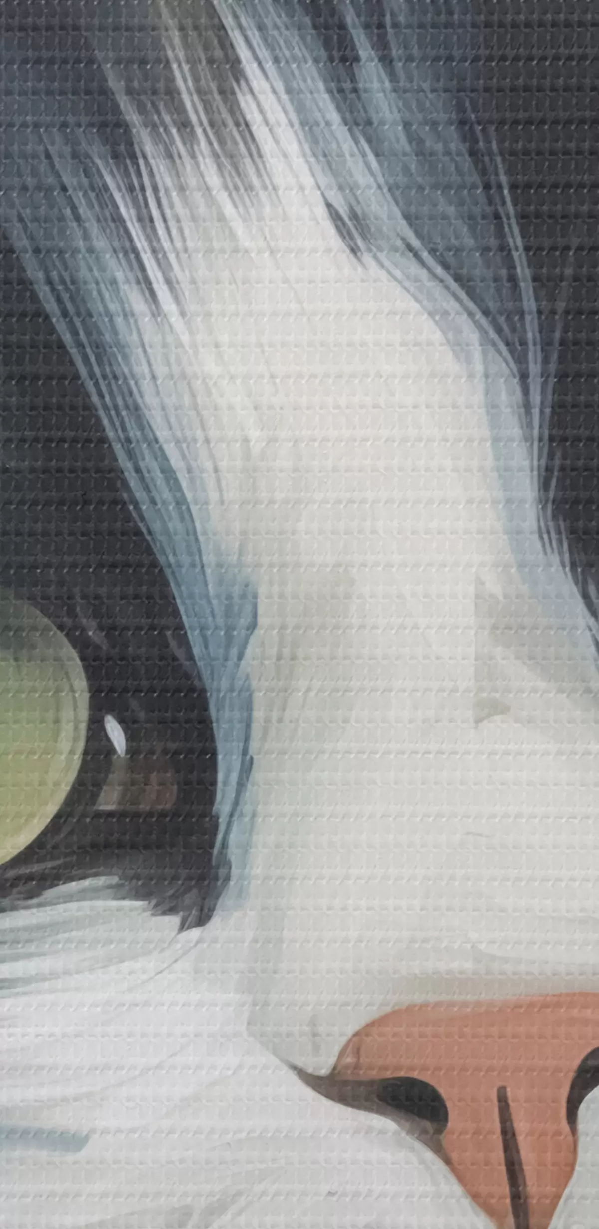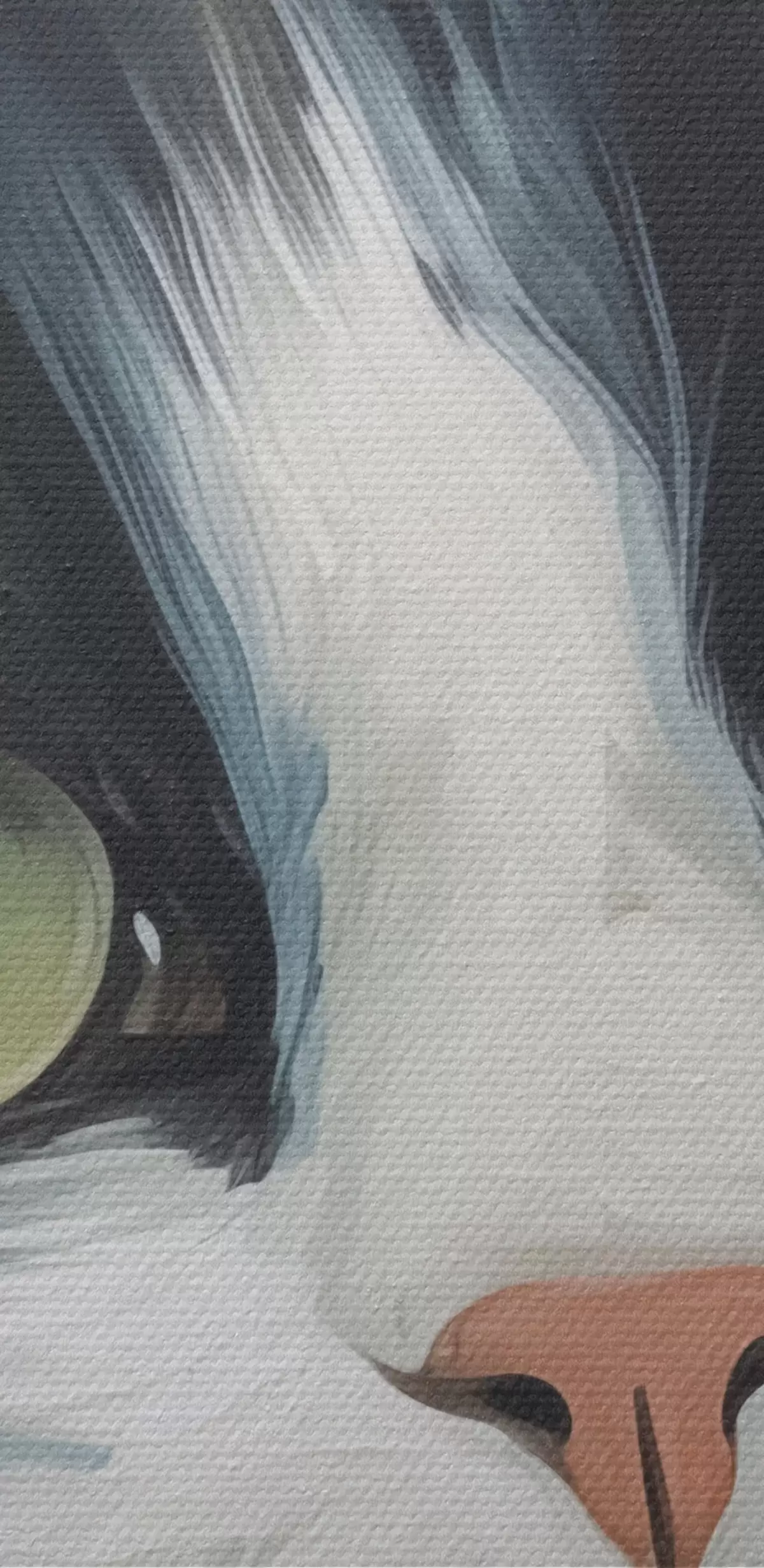 Drobny splot nici na tym płótnie przypomina powierzchnię profesjonalnych płócien artystycznych.