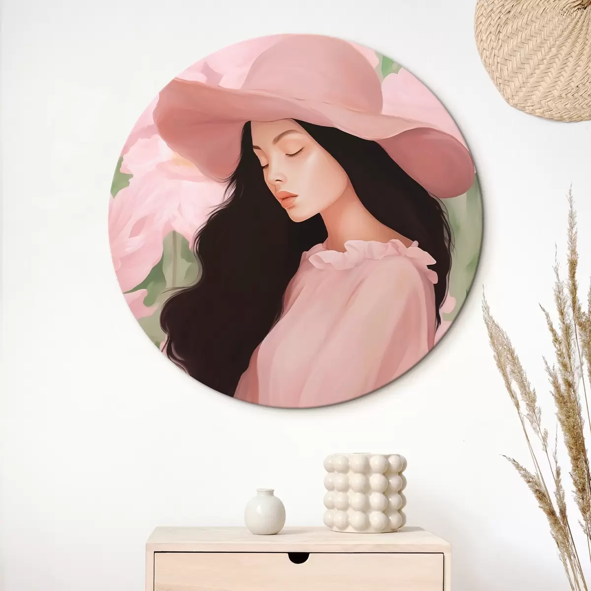 Okrągły obraz Dziewczyna w kapeluszu Nr r45677