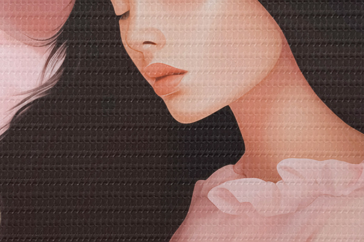 Drobny splot nici na tym płótnie przypomina powierzchnię profesjonalnych płócien artystycznych.