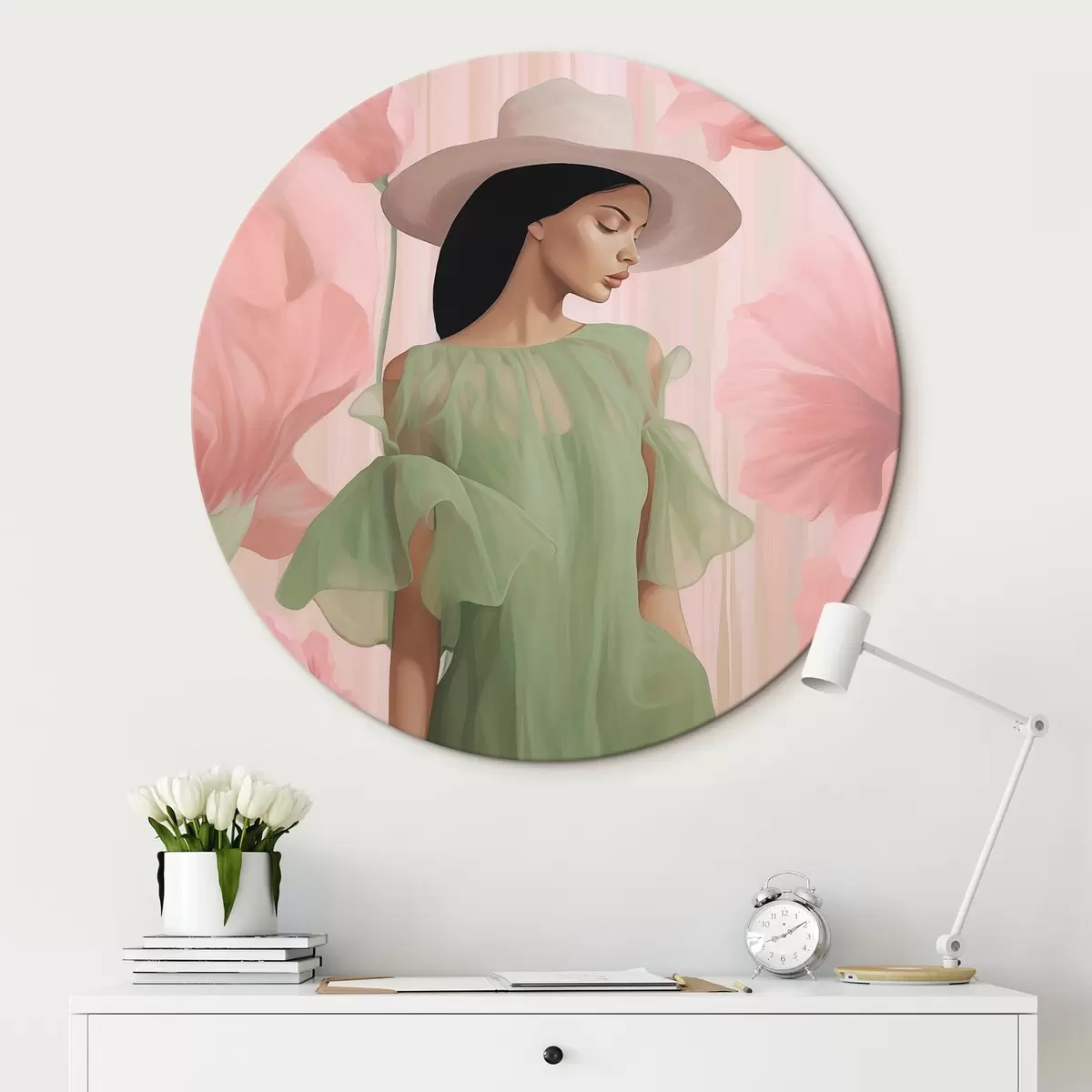 Okrągłe obrazy Dziewczyna w kapeluszu wśród kwiatów r45678