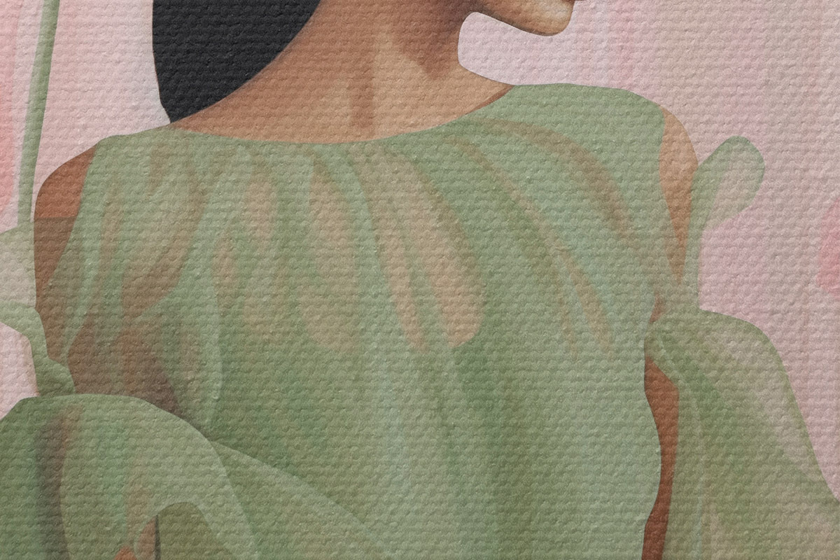Drobny splot nici na tym płótnie przypomina powierzchnię profesjonalnych płócien artystycznych.