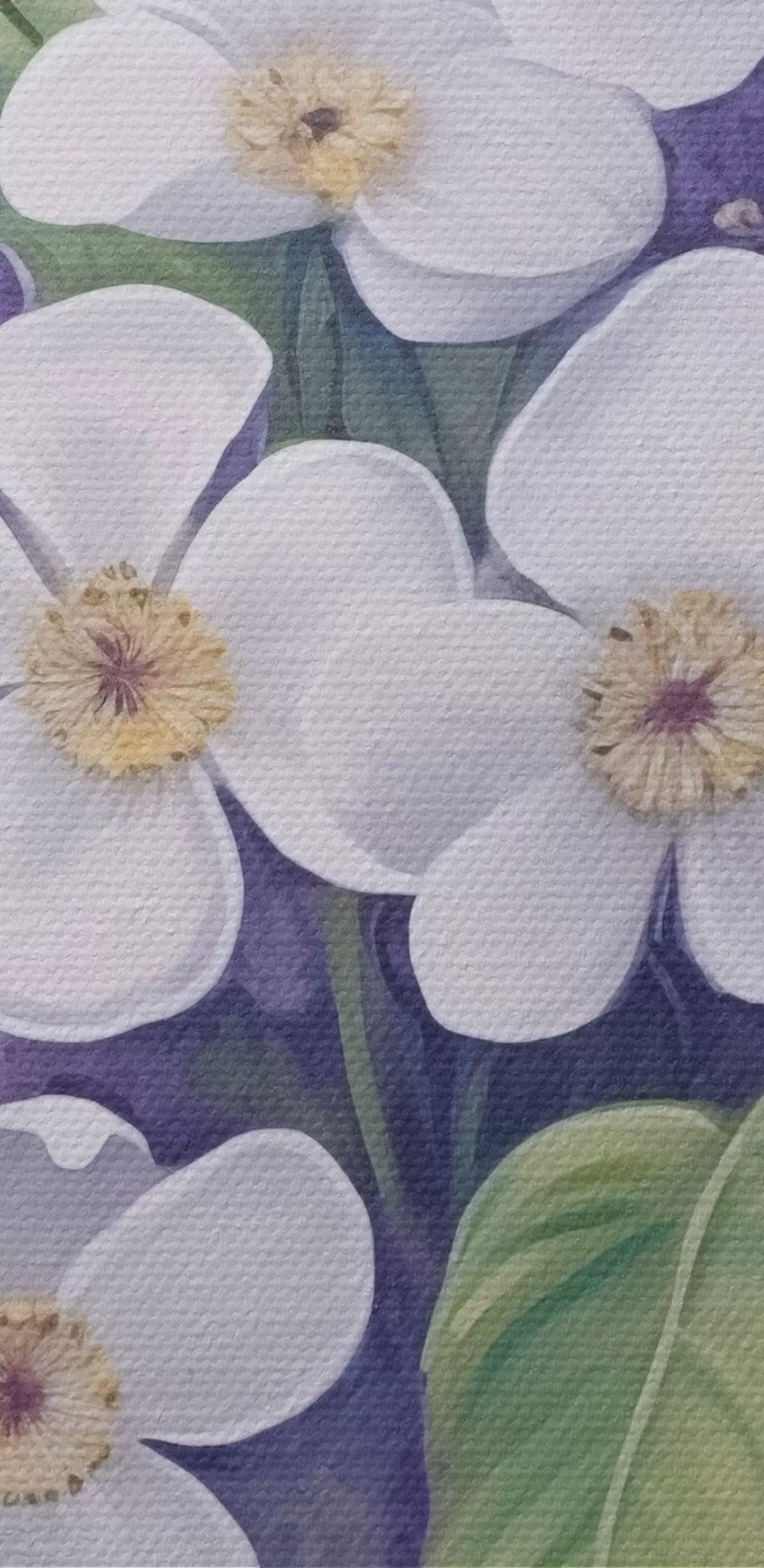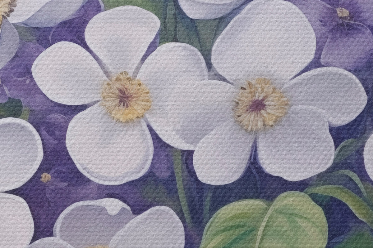 Drobny splot nici na tym płótnie przypomina powierzchnię profesjonalnych płócien artystycznych.
