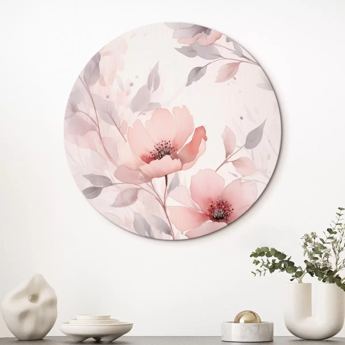 Okrągłe obrazy Delikatne różowo-szare kwiaty z efektem akwareli r45702