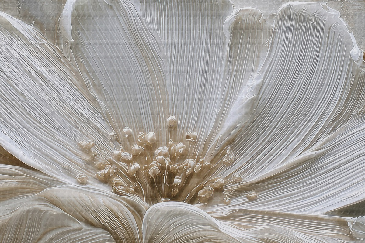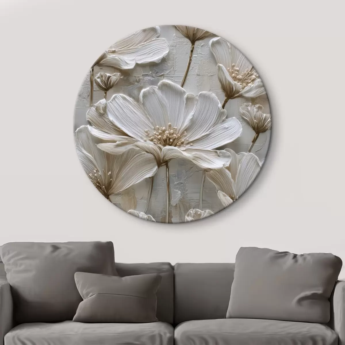 Okrągłe obrazy kremowe kwiaty w stylu imitującym impasto r45713