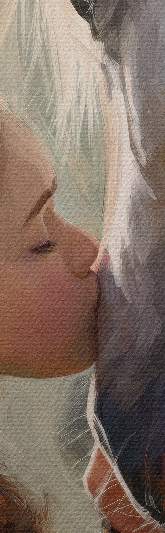 Drobny splot nici na tym płótnie przypomina powierzchnię profesjonalnych płócien artystycznych.