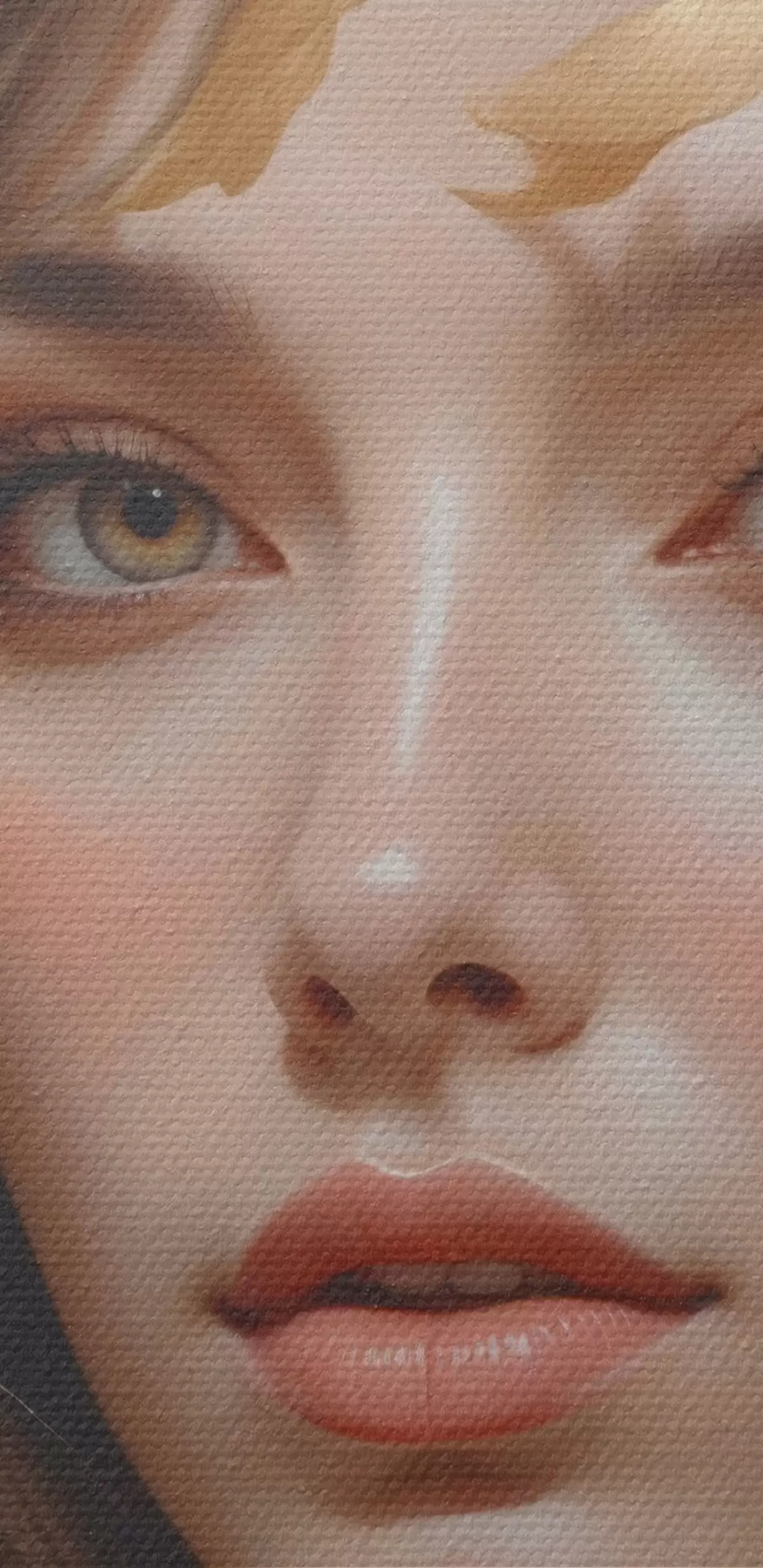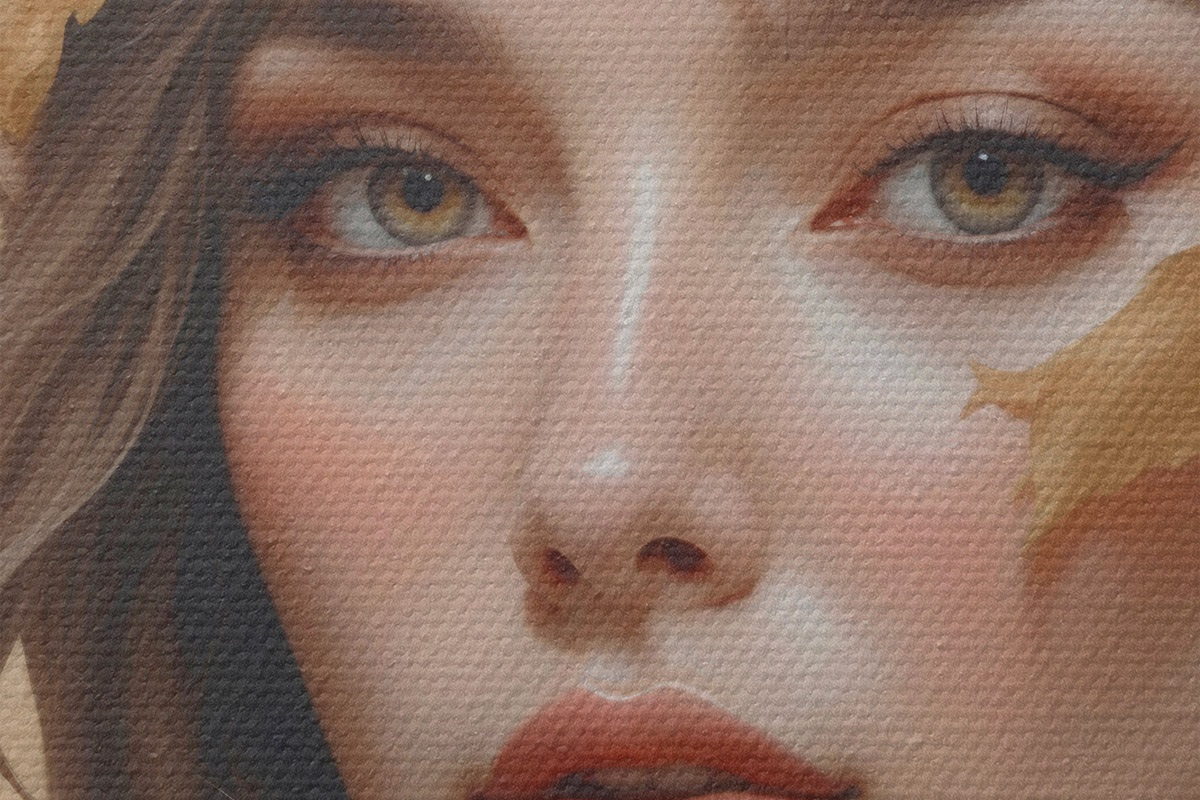 Drobny splot nici na tym płótnie przypomina powierzchnię profesjonalnych płócien artystycznych.