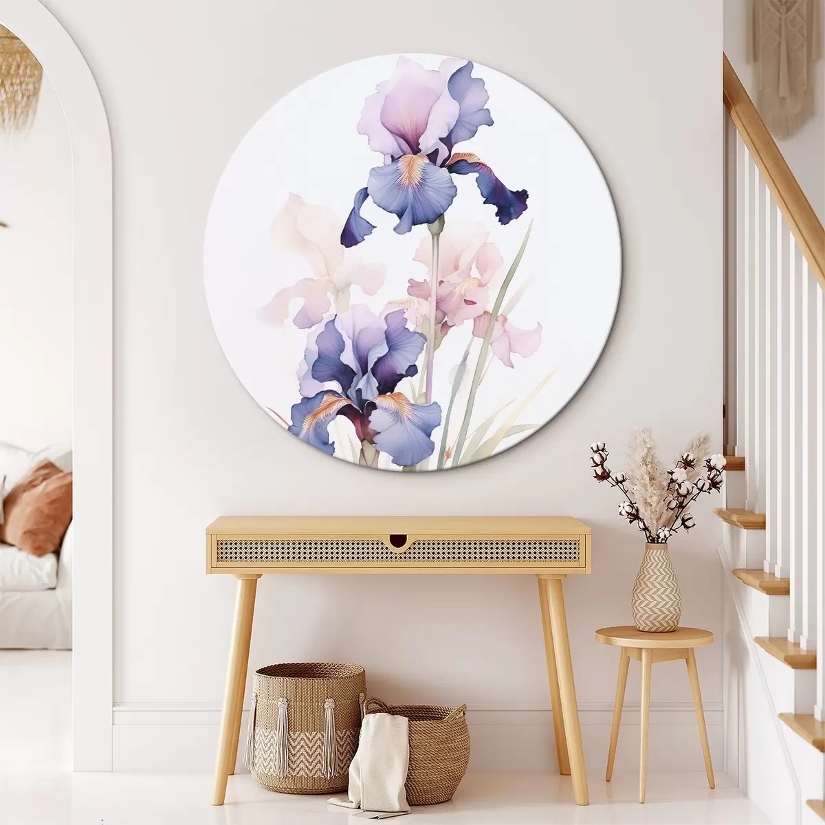 Okrągły obraz Irysy imitujące akwarelę Nr r45762