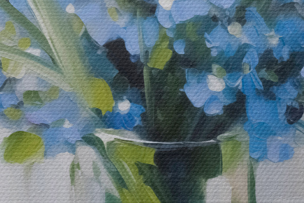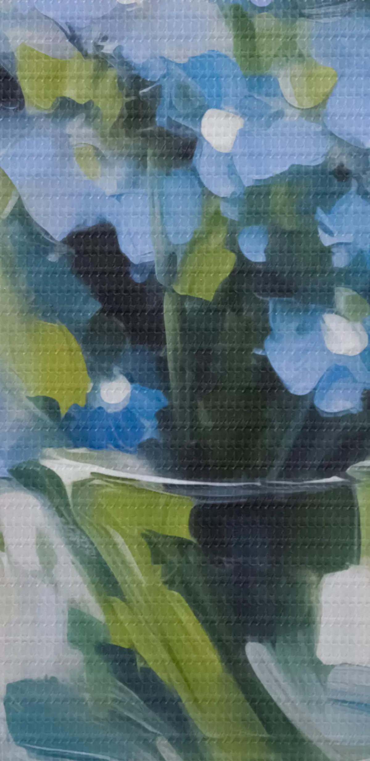 Drobny splot nici na tym płótnie przypomina powierzchnię profesjonalnych płócien artystycznych.