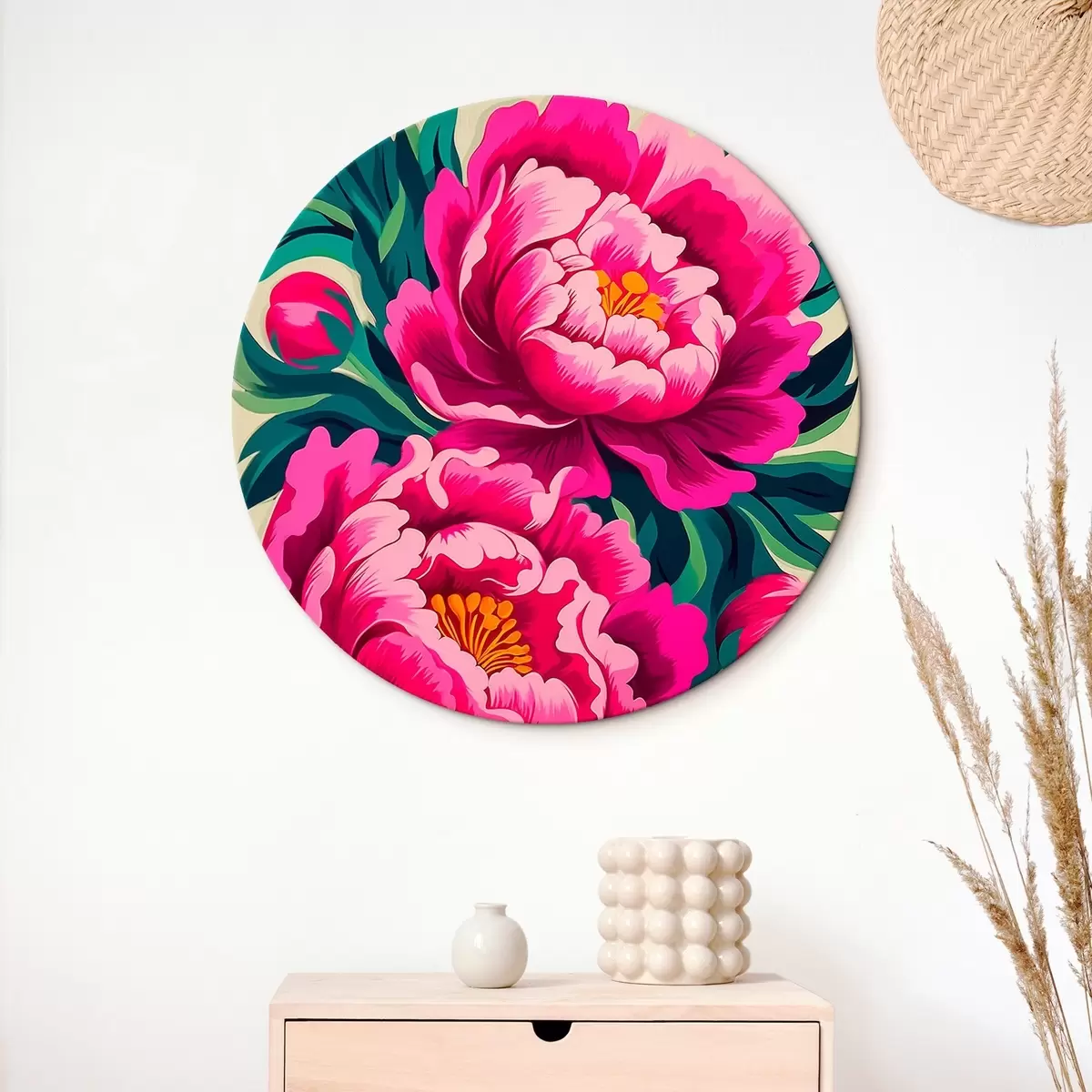 Okrągły obraz Piwonie z bliska Nr r45781