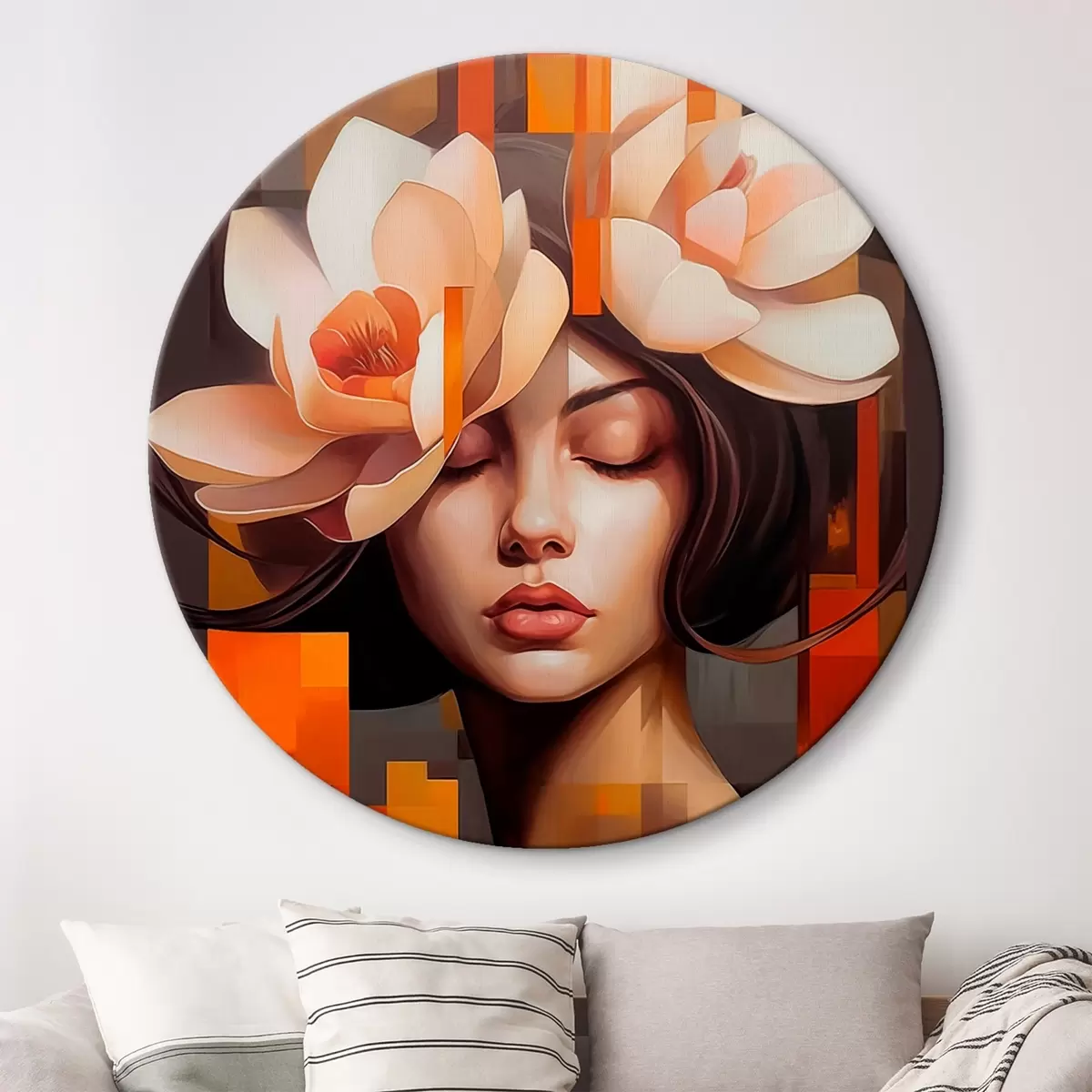 Okrągły obraz Kobieta z kwiatem Nr r45797