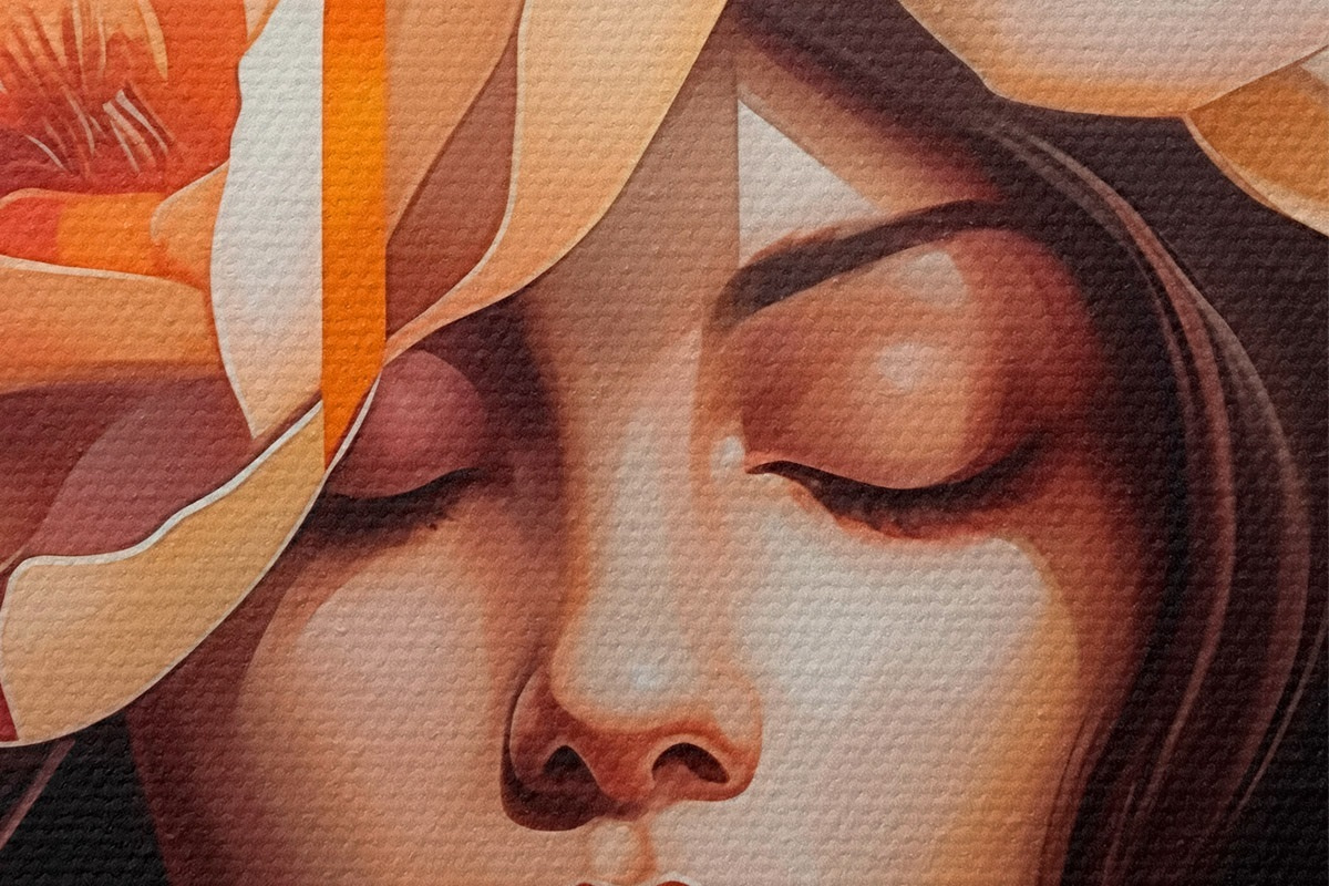 Drobny splot nici na tym płótnie przypomina powierzchnię profesjonalnych płócien artystycznych.
