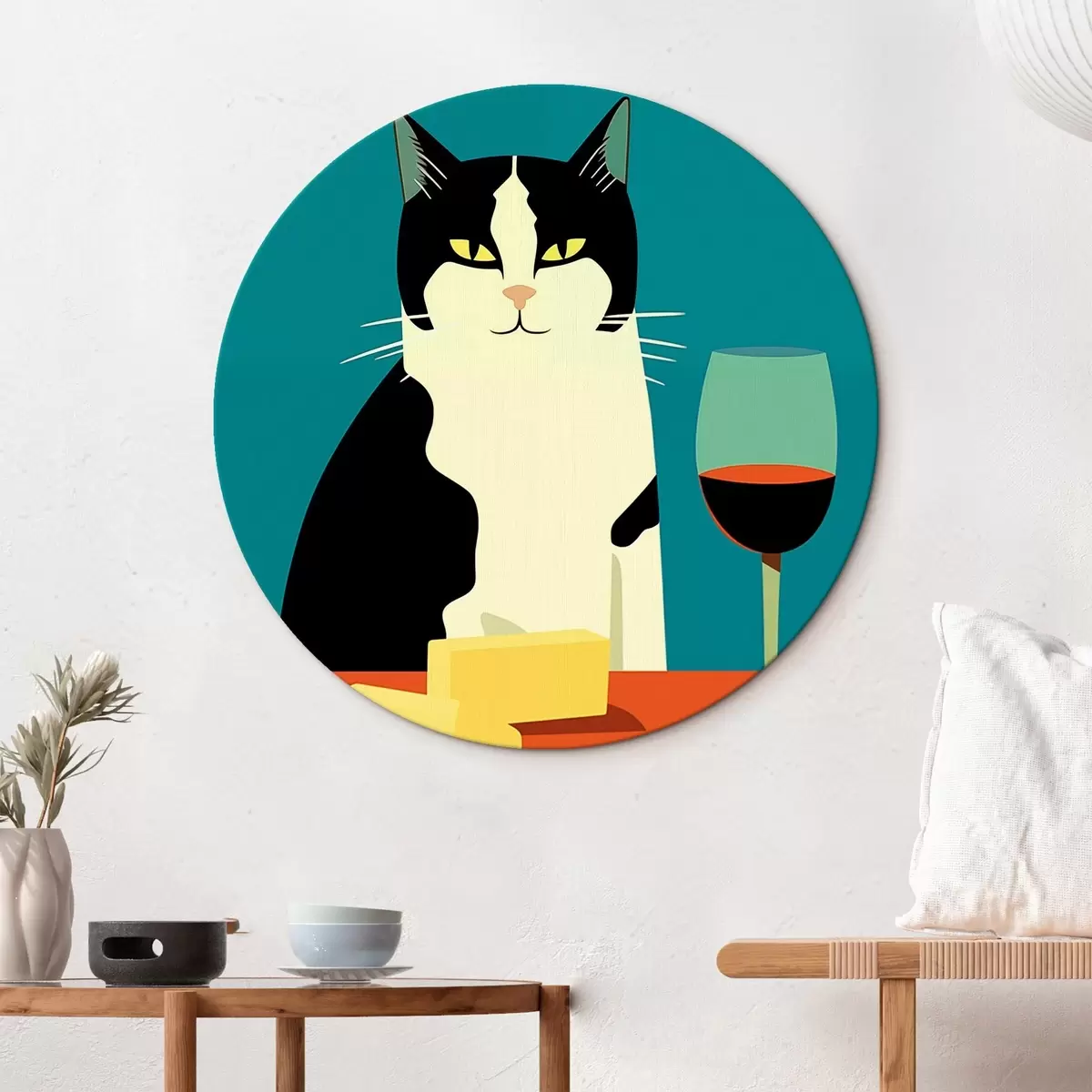 Okrągłe obrazy Kot z winem i serem r45801