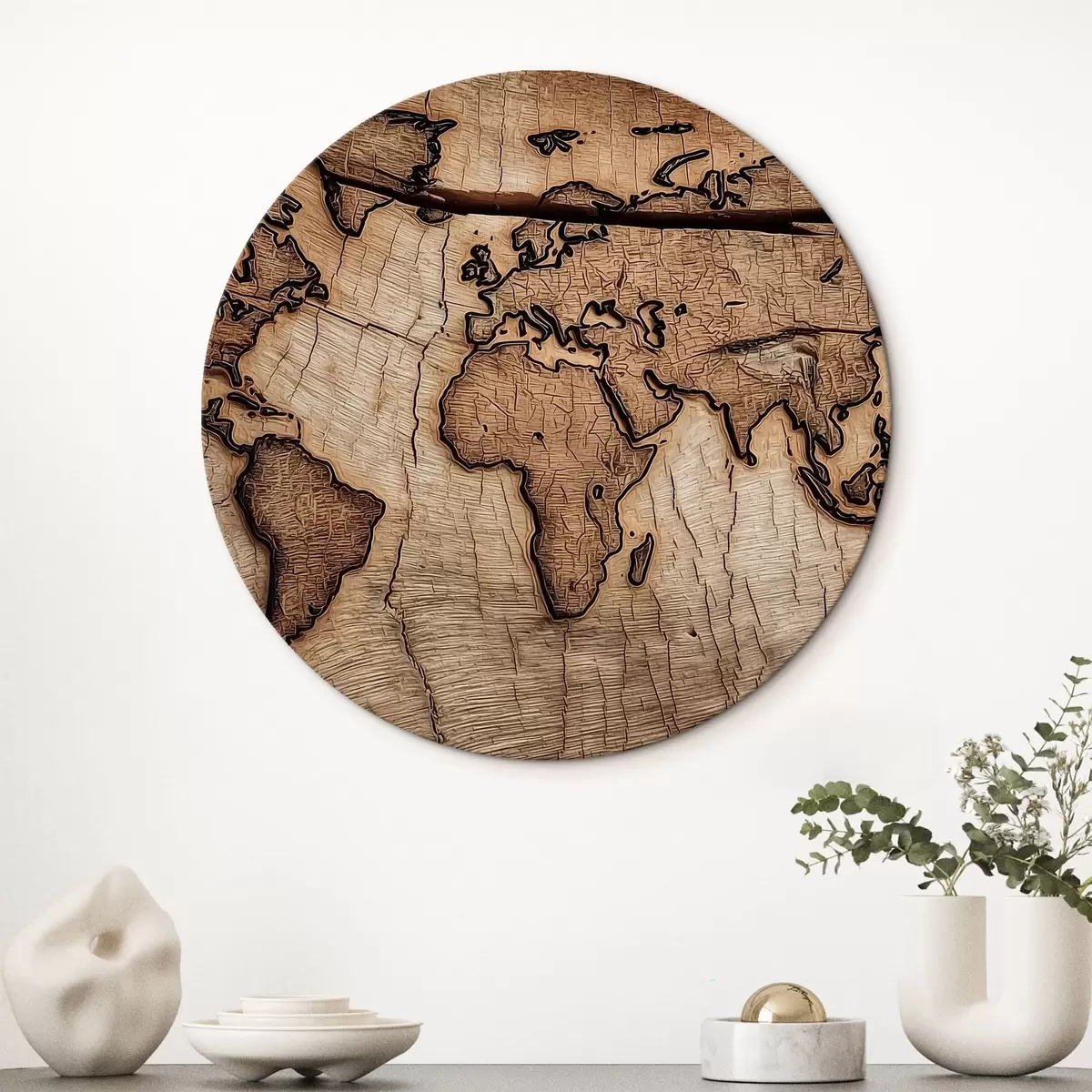 Okrągłe obrazy Grawerowana drewniana mapa świata r45805