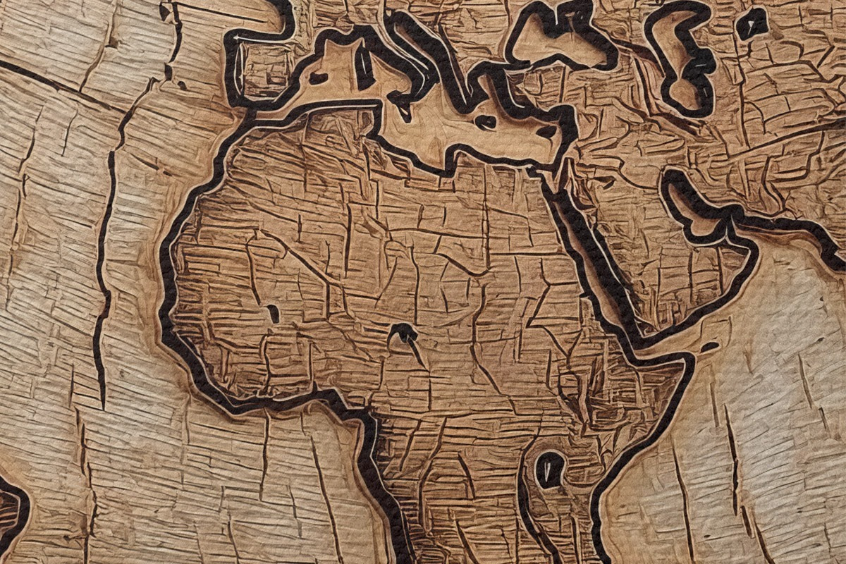 Okrągły obraz Grawerowana drewniana mapa świata Nr r45805