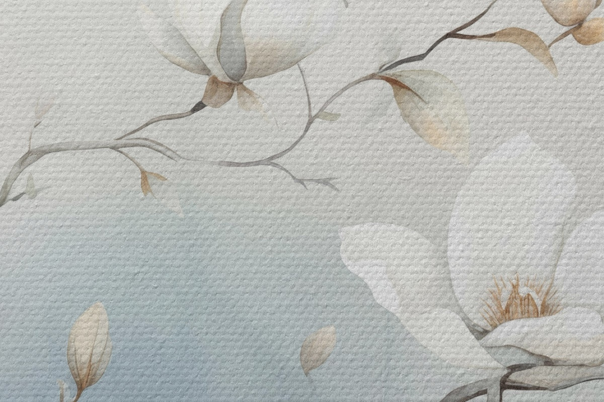 Okrągłe obrazy Gałęzie magnolii z białymi kwiatami na delikatnym tle r45806